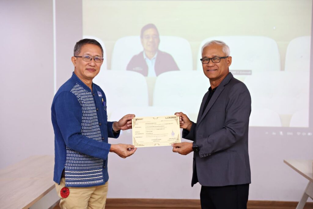 ผศ.สมเกียรติ วงษ์พานิช รองอธิการบดีฝ่ายบริหาร มหาวิทยาลัยเทคโนโลยีราชมงคลล้านนา (มทร.ล้านนา) พร้อมด้วยคณะผู้บริหารและอาจาย์นักวิจัยถนนยางมะตอยเย็นจากวัสดุรีไซเคิล รับมอบถนนยางมะตอยฉาบผิวสำเร็จรูปภายในมหาวิทยาลัยเทคโนโลยีราชมงคลล้านนา เชียงราย จาก นายชาญ หาญพิทักษ์กุล ประธานเจ้าหน้าที่บริหาร บริษัท พีซีเอ็น คอร์ป จำกัด (มหาชน) ผู้สนับสนุนโครงการ เมื่อวันที่ 25 มิถุนายน 2567