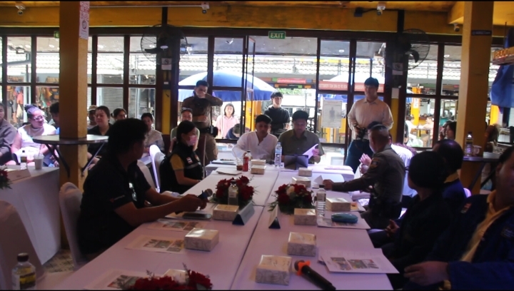 ตัวแทนชี้แจงร้านค้าที่ประกอบการในโครงการบุญอยู่บาซาร์