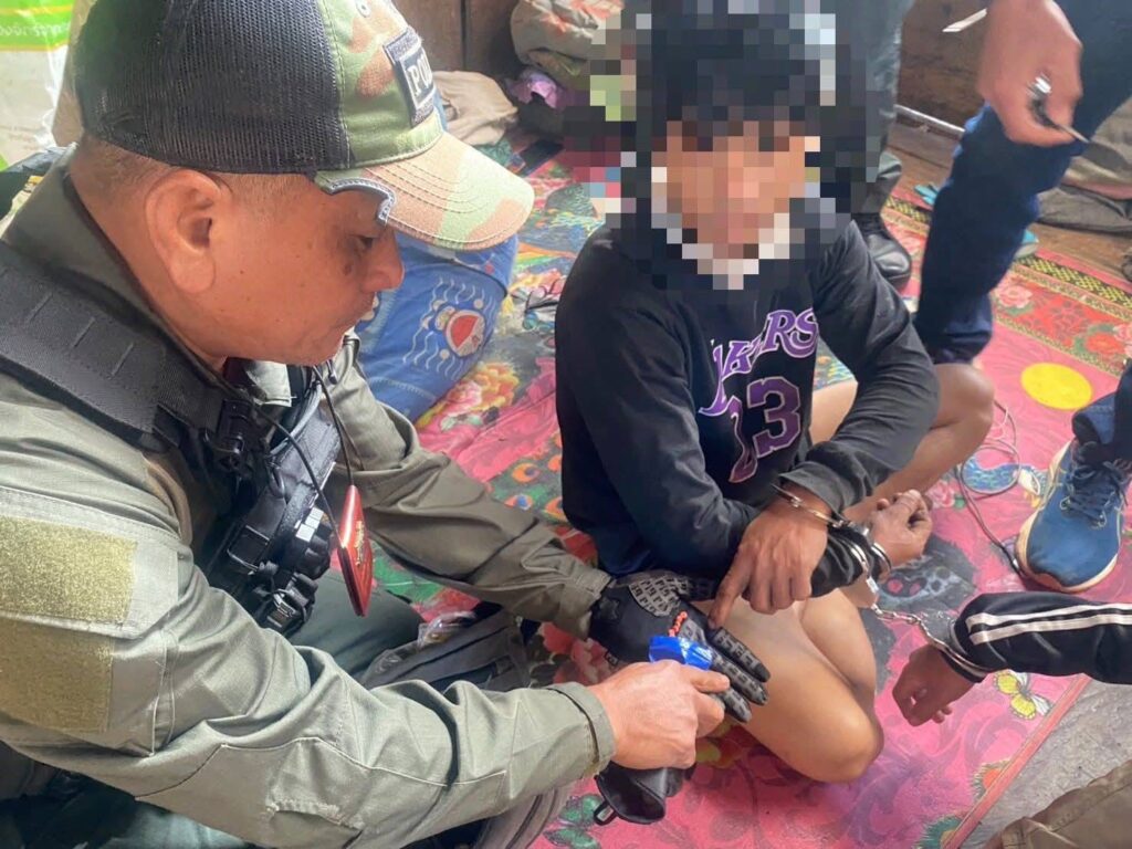 จากการตรวจสอบ เจ้าหน้าที่ได้พบนายหม่อง อายุ 45 ปี ซึ่งเป็นบุคคลต่างด้าวสัญชาติเมียนมา ไม่มีนามสกุล พักอาศัยอยู่ในกระท่อมดังกล่าว เมื่อทำการตรวจค้นตัวในเบื้องต้น พบยาบ้าบรรจุในถุงพลาสติกสีน้ำเงินแบบรูดปิดเปิด ซุกซ่อนอยู่ในตลับหนังสีดำ จำนวน 148 เม็ด และยังพบยาบ้าบรรจุในหลอดพลาสติกทึบแสงสีขาวอีก 21 เม็ด