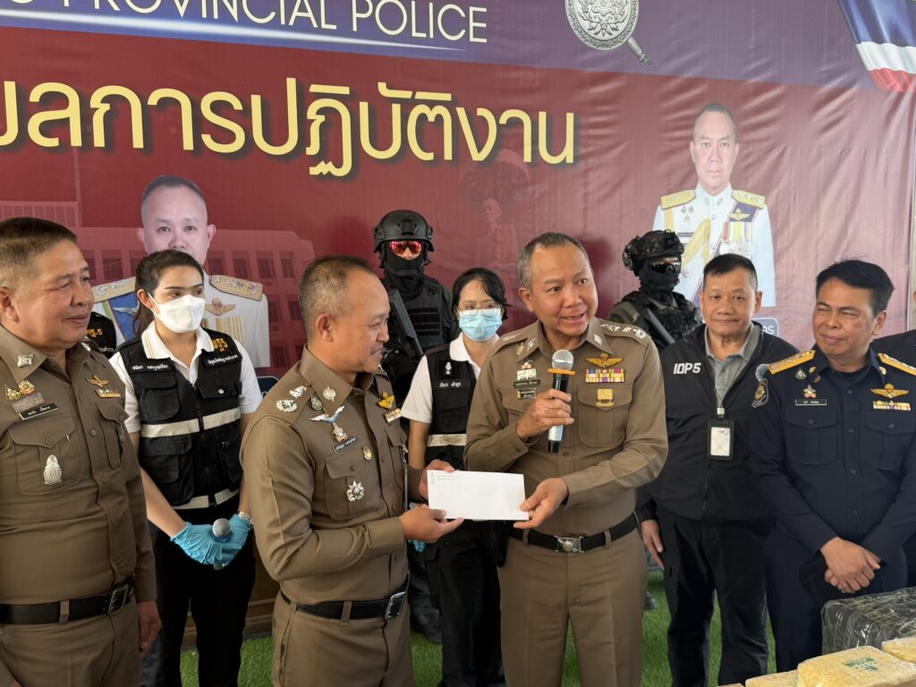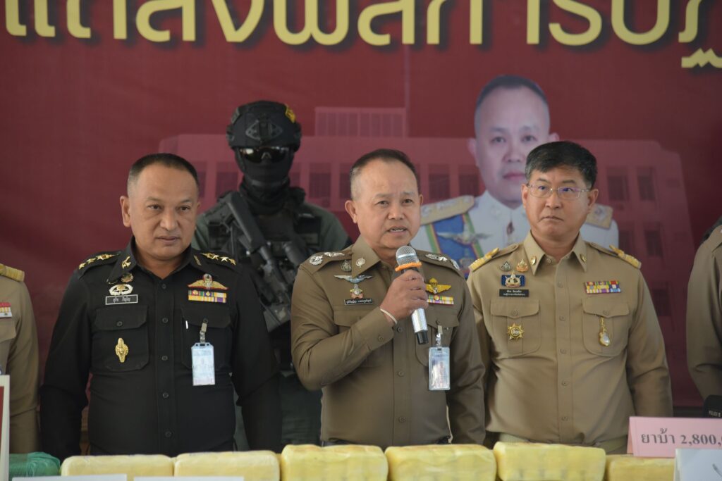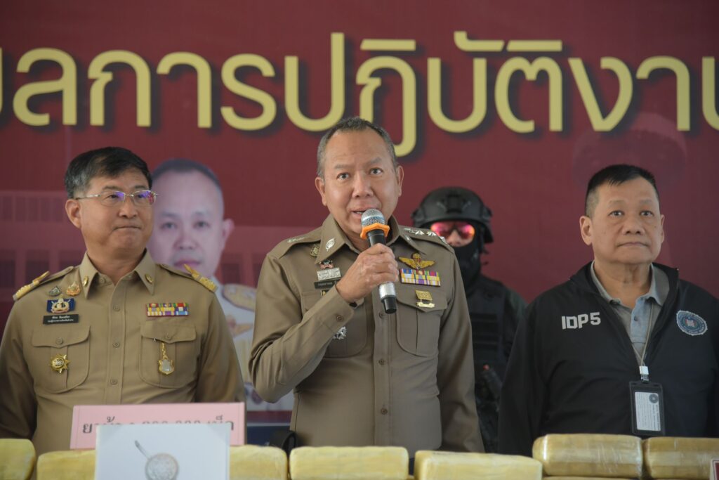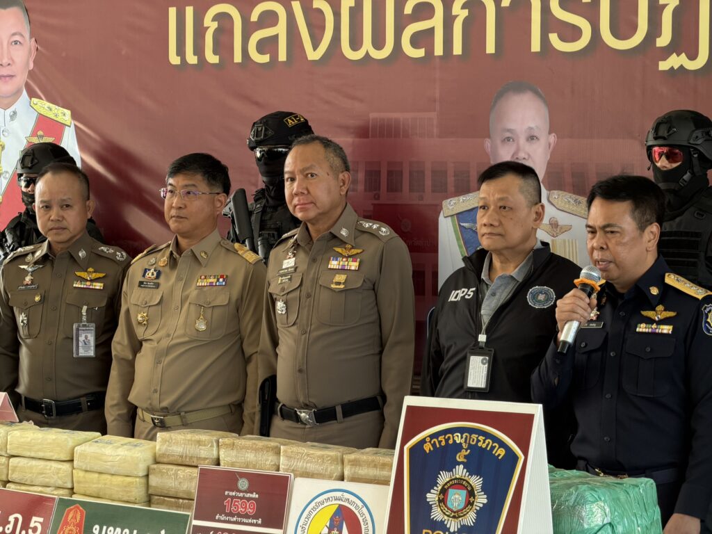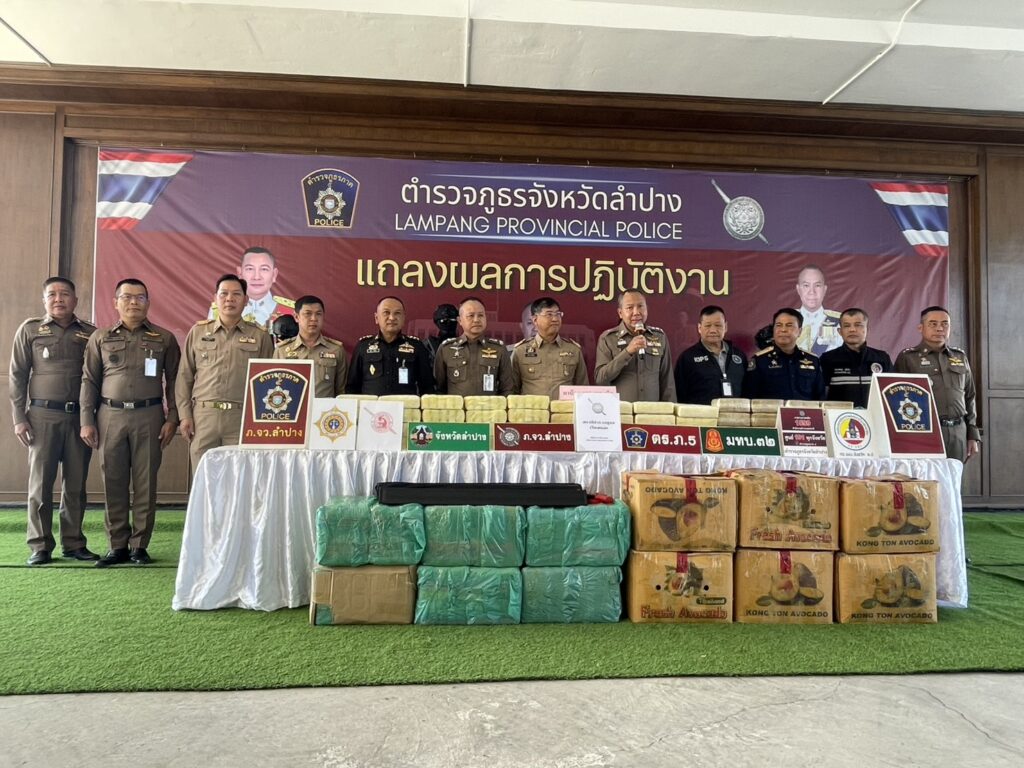 โดยมี นายพัชระ สิมะเสถียร รอง ผวจ.ลำปาง, พล.ต.ต.ภูมิปัญญ์ญา นวตระกูลพิสุทธิ์ ผบก.ภ.จว.ลำปาง , พ.ต.ท.นริช สอนดิษฐ ผอ.ปปส.ภาค 5, นายวุฒิพงษ์ แก้วปาเฟือย นายอำเภอเถิน จ.ลำปาง และฝ่ายทหาร นบ.ยส.35 ร่วมแถลงผลการจับกุม ณ ลานแถลงข่าวตำรวจภูธรจังหวัดลำปาง ถ.ลำปาง – แจ้ห่ม ต.ต้นธงชัย อ.เมืองลำปาง จ.ลำปาง