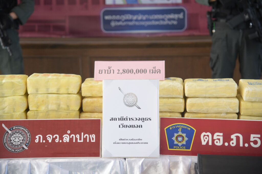 เมื่อวันที่ 27 กุมภาพันธ์ 2569 เวลา 11.00 น. พล.ต.ท.กฤตธาพล ยี่สาคร ผบช.ภ.5 เป็นประธานการแถลงข่าวผลการจับกุม และสืบสวนขยายผลคดียาเสพติดรายสำคัญ ของ ภ.จว.ลำปาง กรณีเมื่อวันที่ 25 กุมภาพันธ์ 2569 สภ.เวียงมอก จ.ลำปาง ร่วมกับ ศูนย์สกัดกั้นการลักลอบลำเลียงยาเสพติด ตำรวจภูธรภาค 5 จับกุมผู้ต้องหา 5 คนพร้อมด้วย รถยนต์ 3 คัน และยาเสพติดของกลางยาบ้า 2,800,000 เม็ด