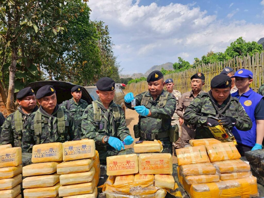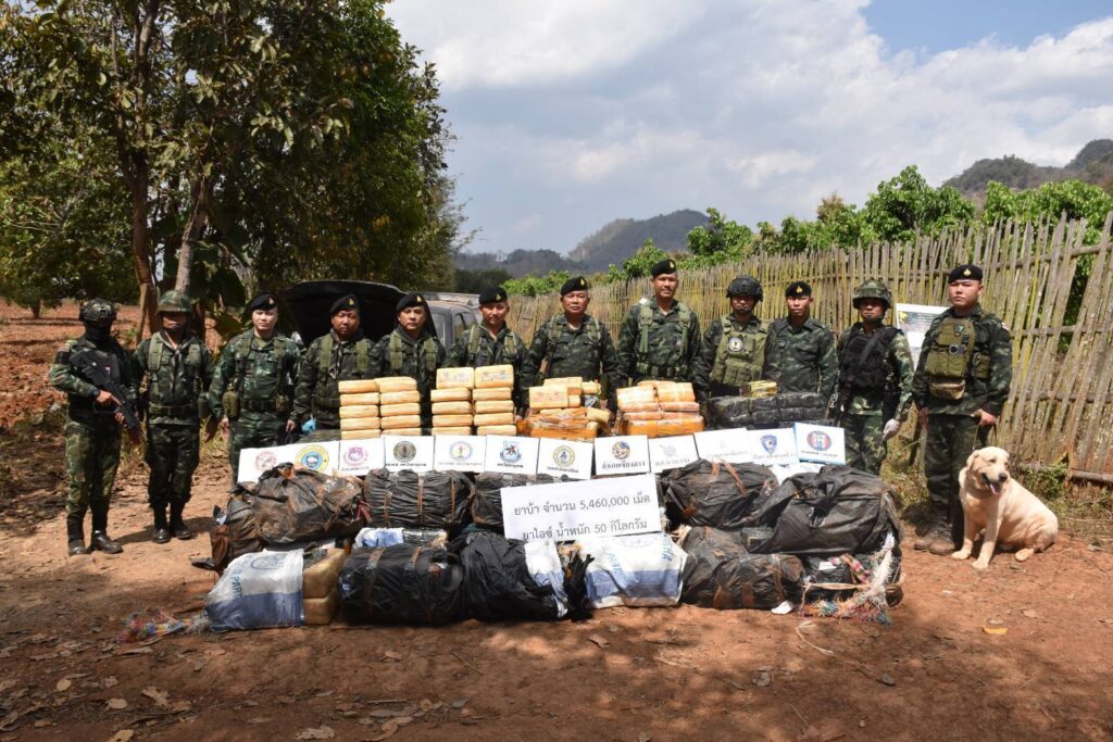 เมื่อวันที่ 26 กุมภาพันธ์ 2569 เวลา 15.00 น. กองกำลังผาเมือง โดย กองร้อยทหารม้าที่ 2 หน่วยเฉพาะกิจไชยานุภาพ จัดกำลังพล จำนวน 1 ชุดปฏิบัติการ ทำการลาดตระเวนเฝ้าตรวจ เพื่อป้องกันและสกัดกั้นการกระทำผิด ตามพระราชบัญญัติให้ใช้ ประมวลกฎหมายยาเสพติด พ.ศ. 2564 บริเวณ บ้านอรุโณทัย ตำบลเมืองนะ อำเภอเชียงดาว จังหวัดเชียงใหม่ ต่อมาเมื่อวันที่ 27 กุมภาพันธ์ 2569 เวลา 04.45 น. ได้ตรวจพบกลุ่มบุคคลต้องสงสัย ประมาณ 20 – 25 คน กำลังลำเลียงกระสอบดัดแปลงขึ้นรถยนต์กระบะ จนท.จึงให้สัญญาณเพื่อขอตรวจค้น กลุ่มผู้ต้องสงสัยได้อาศัยห้วงทัศนวิสัยที่จำกัด และความชำนาญในภูมิประเทศหลบหนีไปได้ หน่วยจึงได้จัดกำลังเพิ่มเติม 2 ชุดปฏิบัติการ, ชุดปฏิบัติการโดรน 1 ชุดปฏิบัติการ และ ชุดสุนัขทหารตรวจค้นยาเสพติด จำนวน 1 ชุดปฏิบัติการ เข้าควบคุมและขยายผล ผลการปฏิบัติตรวจพบยาเสพติดให้โทษประเภท 1 (ยาบ้า) บรรจุอยู่ภายในกระสอบดัดแปลง จำนวน 23 กระสอบ รวมจำนวน 5,460,000 เม็ด และ ไอซ์ บรรจุอยู่ภายในกระสอบดัดแปลง จำนวน 2 กระสอบ รวมจำนวน 50 กิโลกรัม และ รถยนต์กระบะ ยี่ห้อ ฟอร์ดเรนเจอร์ สีดำ ทะเบียน บป 1455 ภูเก็ต จำนวน 1 คัน