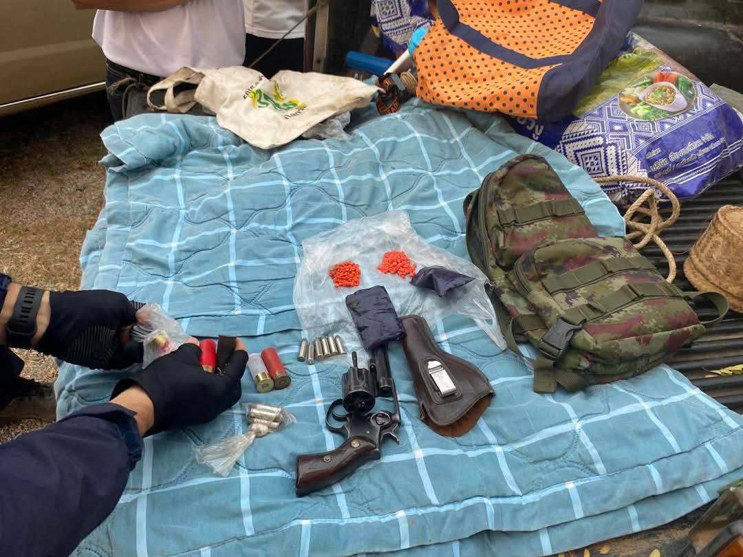 แพร่-สภ.ลองฯ จับกุมผู้ต้องหาตามหมายศาล ของกลางอาวุธปืน เครื่องกระสุน ยาบ้า