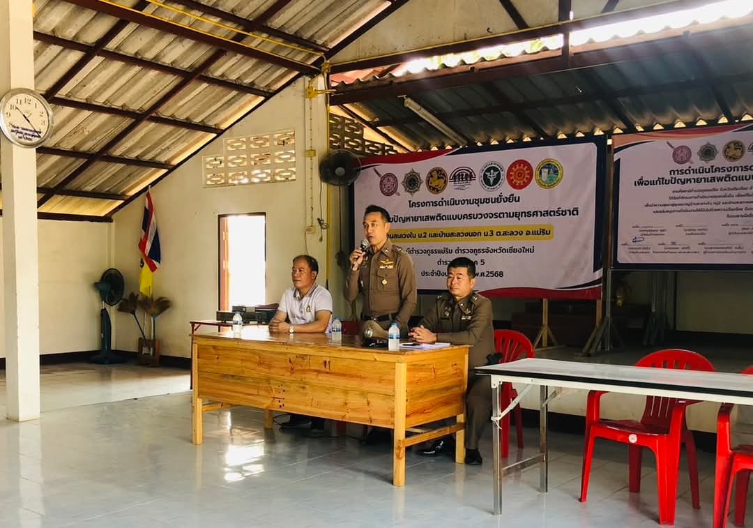 วันที่ 26 มี.ค.2568 เวลา 09.30 น.โดยการอำนวยการของ พ.ต.อ.สิทธา คำเลิศ ผกก.สภ.แม่ริมฯมอบหมายให้ พ.ต.ท.นำพล พรหมการัตน์ รอง ผกก.ป.สภ.แม่ริมฯ พ.ต.ต.วุฒิไกร สมใจ สวป.(ชส.)สภ.แม่ริมฯพร้อมเจ้าหน้าที่ตำรวจชุดจิตอาสา,ชุดปฏิบัติการตำบลยั่งยืน ออกพบปะเยี่ยมเยียนประชาชนและผู้ป่วยติดเตียงพร้อมมอบสิ่งของเครื่องใช้ให้กับผู้ป่วยติดเตียง ประชุมคณะกรรมการหมู่บ้านและผู้นำชุมชนเพื่อประชาคมกำหนดกฎกติกาหมู่บ้านในการป้องกันแก้ไขปัญหายาเสพติด ตามโครงการดำเนินงานตำบลยั่งยืน เพื่อแก้ไขปัญหายาเสพติดแบบครบวงจรตามยุทธศาสตร์ชาติ บ้านสะลวงใน ม.2 และบ้านสะลวงนอก ม.3 ต.สะลวง อ.แม่ริม
