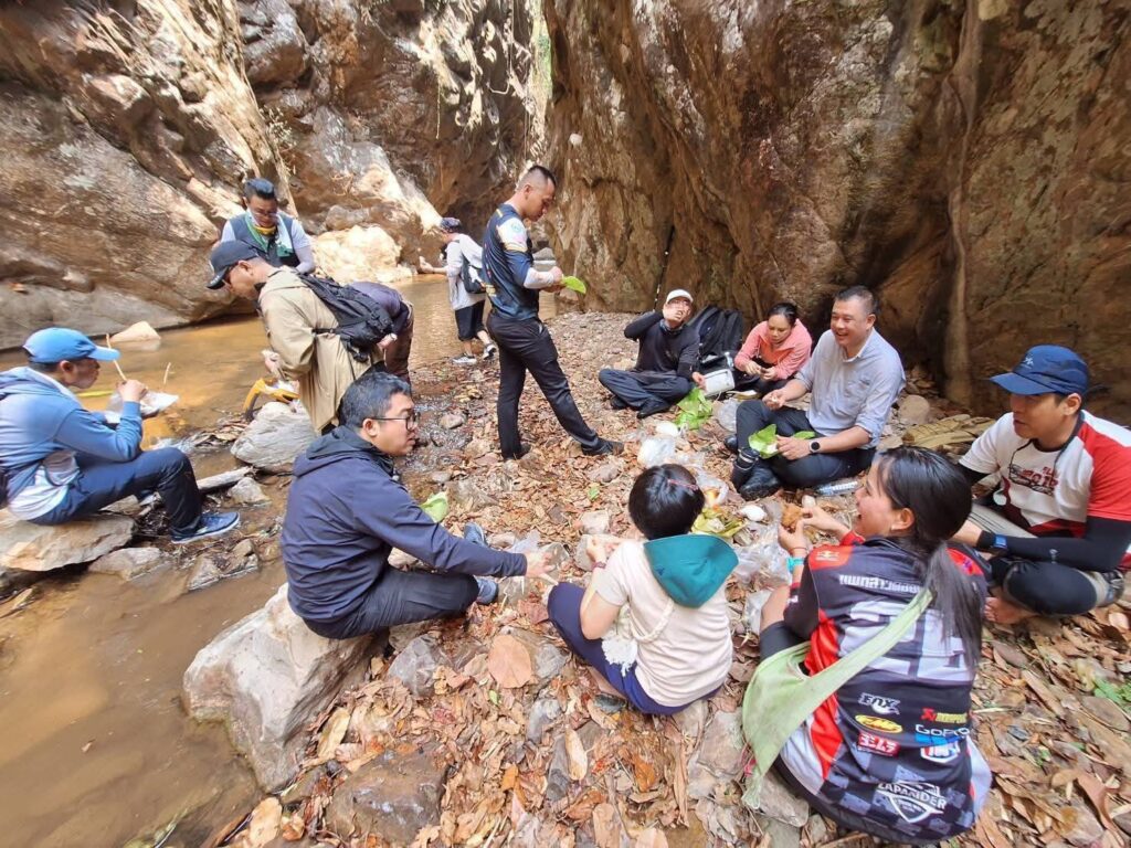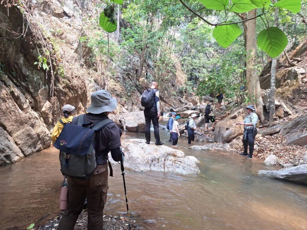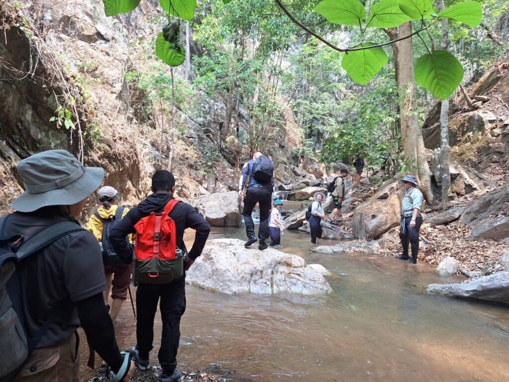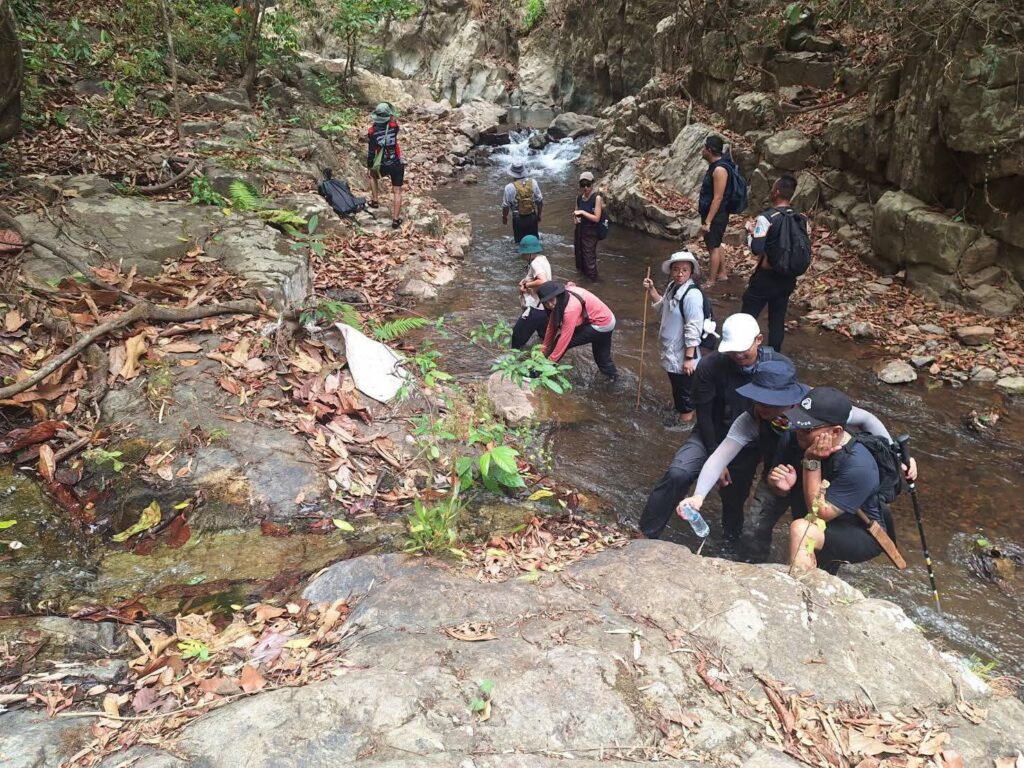 ตลอดเส้นทาง นักเดินป่าจะได้สัมผัสบรรยากาศเย็นฉ่ำจากลำธาร น้ำตกขนาดเล็ก และร่มเงาของผืนป่ากลางหุบเขา แม้อยู่ในช่วงเดือนเมษายนซึ่งถือเป็นฤดูร้อนที่สุดของปี แต่พื้นที่กลับมีความชุ่มชื้นอย่างน่าอัศจรรย์ โดยไฮไลต์สำคัญคือ “ตาน้ำ” หรือจุดที่น้ำไหลผุดขึ้นจากใต้ภูเขาแห้งแล้ง กลายเป็นต้นกำเนิดของสายน้ำสำคัญที่หล่อเลี้ยงชุมชนในพื้นที่
