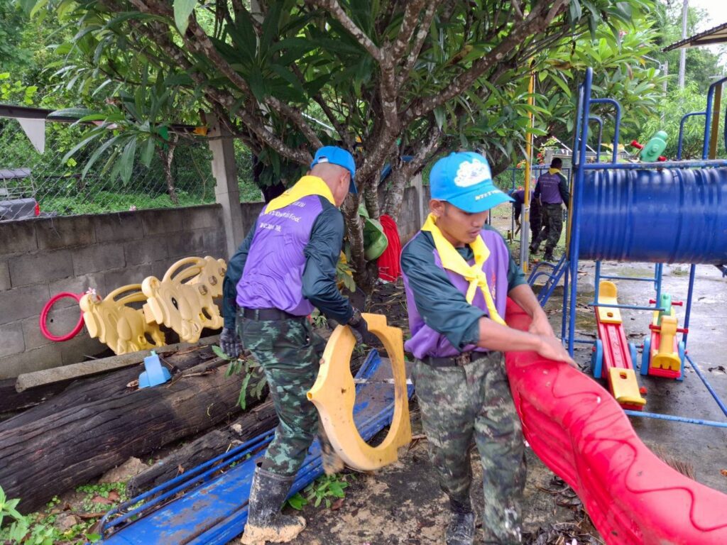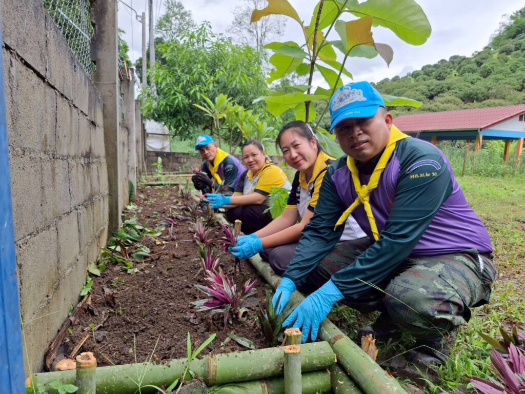 เมื่อ 26 พ.ค. 2568 เวลา09.30 น. กกล.ผาเมือง โดย บก.ผาดง ฉก.ไชยานุภาพ ฝกร.บก.ผาดง ฉก.ไชยานุภาพ พร้อมด้วย ชุดจิตอาสาของหน่วย ร่วมกับ คณะครู ศูนย์พัฒนาเด็กเล็กทุ่งดินดำ ร่วมกิจกรรม บำเพ็ญสาธารณประโยชน์