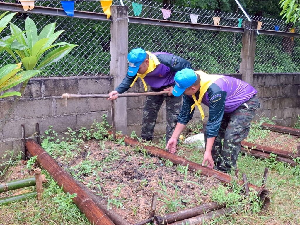 ในการช่วยกันพัฒนาปรับปรุงภูมิทัศน์สภาพแวดล้อมโดยรอบสถานศึกษา เพื่อให้มีความเป็นระเบียบ เรียบร้อย สะอาด น่ามอง และยังช่วยแบ่งเบาภาระให้กับบุคลากรทางการศึกษา รวมทั้งให้น้องๆเด็กนักเรียน ได้เข้าเรียนในสภาพแวดล้อมที่สะอาดและปลอดภัย พร้อมทั้งจัดทำแปลงปลูกผักสำหรับปลูกผักสวนครัวเพื่อเป็นวัตถุดิบในการประกอบอาหารมื้อกลางวันให้กับเด็กๆ อีกทั้งเป็นการสร้างความประทับใจ, ภาพลักษณ์ที่ดีระหว่างหน่วยงานทหารของกองทัพบกและประชาชนในพื้นที่ ณ ศูนย์พัฒนาเด็กเล็กทุ่งดินดำ ต.เมืองนะ อ.เชียงดาว จว.ช.ม. ผลการปฏิบัติเป็นไปด้วยความเรียบร้อย