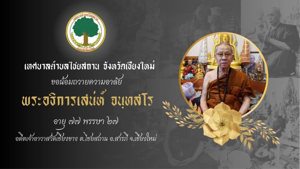 เมื่อวันที่ 27 มิถุนายน 2568 เทศบาลตำบลไชยสถาน นำโดยนายอังกูร จันทะวงค์ นายกเทศมนตรีตำบลไชยสถาน พร้อมด้วยคณะผู้บริหาร และสมาชิกสภาเทศบาลตำบลไชยสถาน ร่วมกับรองปลัดเทศบาล และพนักงานเจ้าหน้าที่เทศบาลตำบลไชยสถาน เข้าร่วมพิธีรดน้ำศพ ท่านพระอธิการเสน่ห์ จนฺทสโร อดีตเจ้าอาวาสวัดเชียงขาง ณ วัดเชียงขาง หมู่ที่ 7 ตำบลไชยสถาน อำเภอสารภี จังหวัดเชียงใหม่ ..