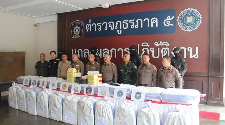 (มีคลิป)ผบช.ตำรวจภูธรภาค 5 แถลงข่าวการจับกุมผู้ต้องหาคดียาเสพติดรายสำคัญ ยึดยาบ้ากว่า 6 ล้านเม็ดและแถลงผลการจับกุมเครือข่ายบัญชีม้าร่วมกับแก๊งคอลเซ็นเตอร์ ยึดของกลางเงินสดได้ถึง 1,539,000 บาท