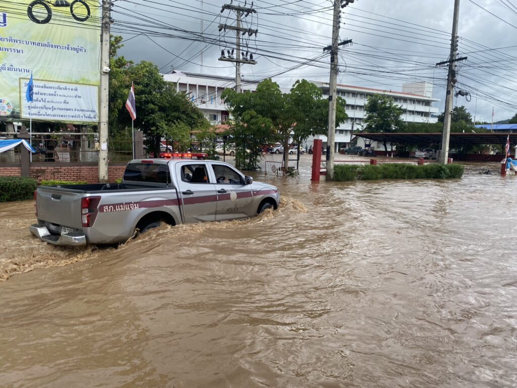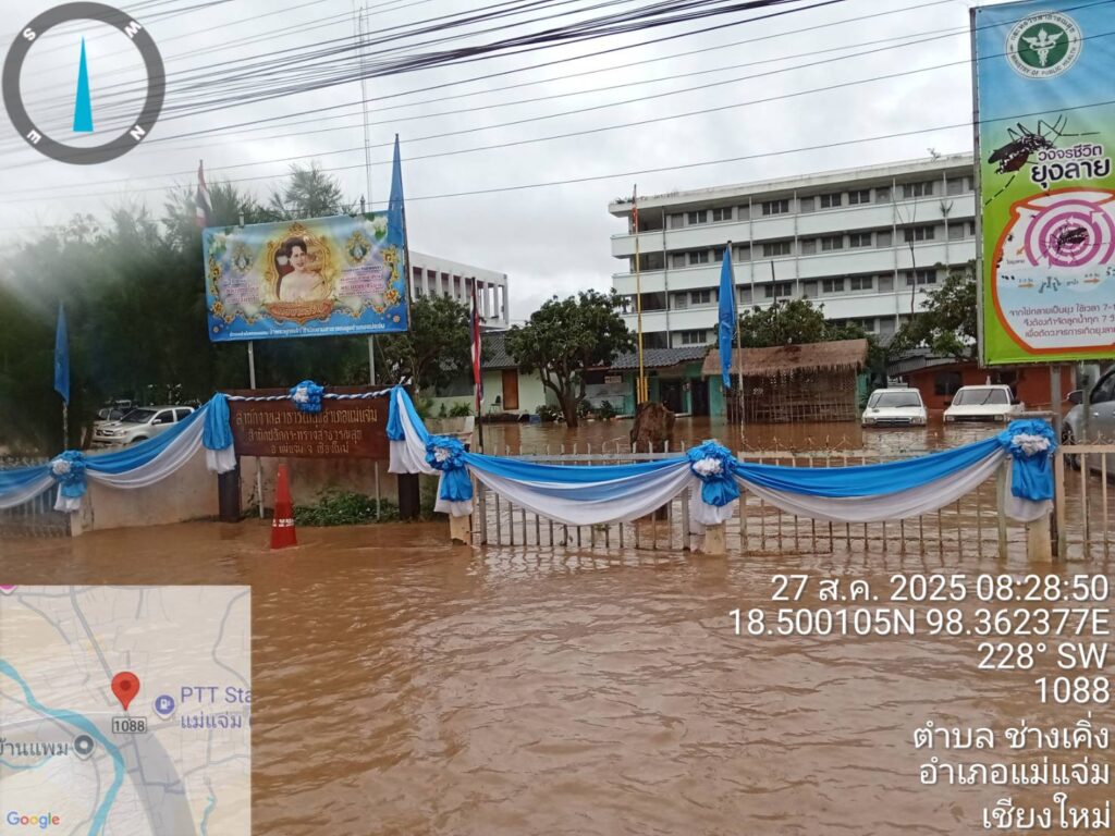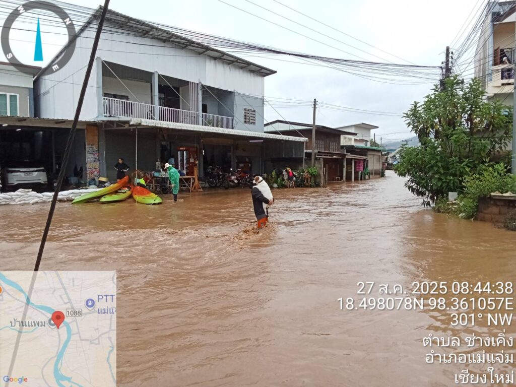 วันพุธ ที่ 27 ส.ค. 68 นายเกื้อกูล มานะสัมพันธ์สกุล ผู้อำนวยการโครงการชลประทานเชียงใหม่ ได้รับรายงานจาก นางสาวชลมาศ ทองคำ หัวหน้าฝ่ายส่งน้ำและบำรุงรักษาที่ 6 โครงการชลประทานเชียงใหม่ จากสถานการณ์ของพายุคาจิกิ ที่ทำให้ฝนตกลงมาอย่างต่อเนื่อง ทำให้มีปริมาณน้ำเอ่อล้นและน้ำท่วมขังในพื้นที่ ตั้งแต่หน้าที่ว่าการอำเภอแม่แจ่ม และจุดอื่นๆ หลายจุด
