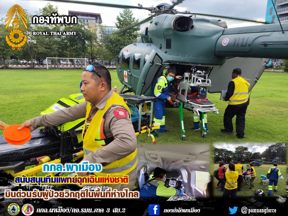 เชียงใหม่-กกล.ผาเมือง สนับสนุนทีมแพทย์ฉุกเฉินแห่งชาติ บินด่วนรับผู้ป่วยวิกฤติในพื้นที่ห่างไกล