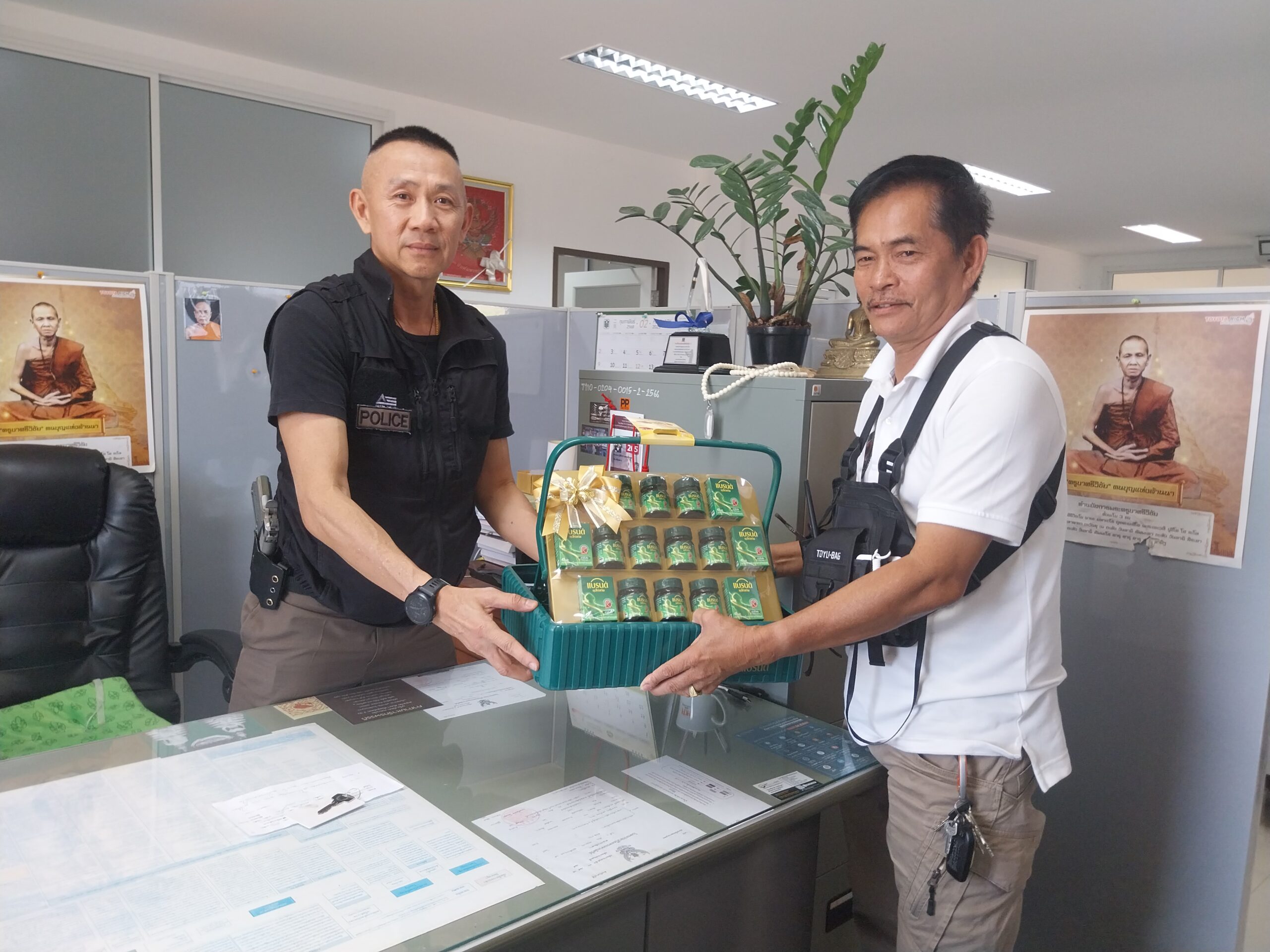 เชียงใหม-ประธานชุมชนฟ้าใหม่รวมใจสามัคคี เทศบาลนครเชียงใหม่ มอบกระเช้าขอบคุณ เจ้าหน้าที่ตำรวจ สภ.เชียงดาว จว.ชม