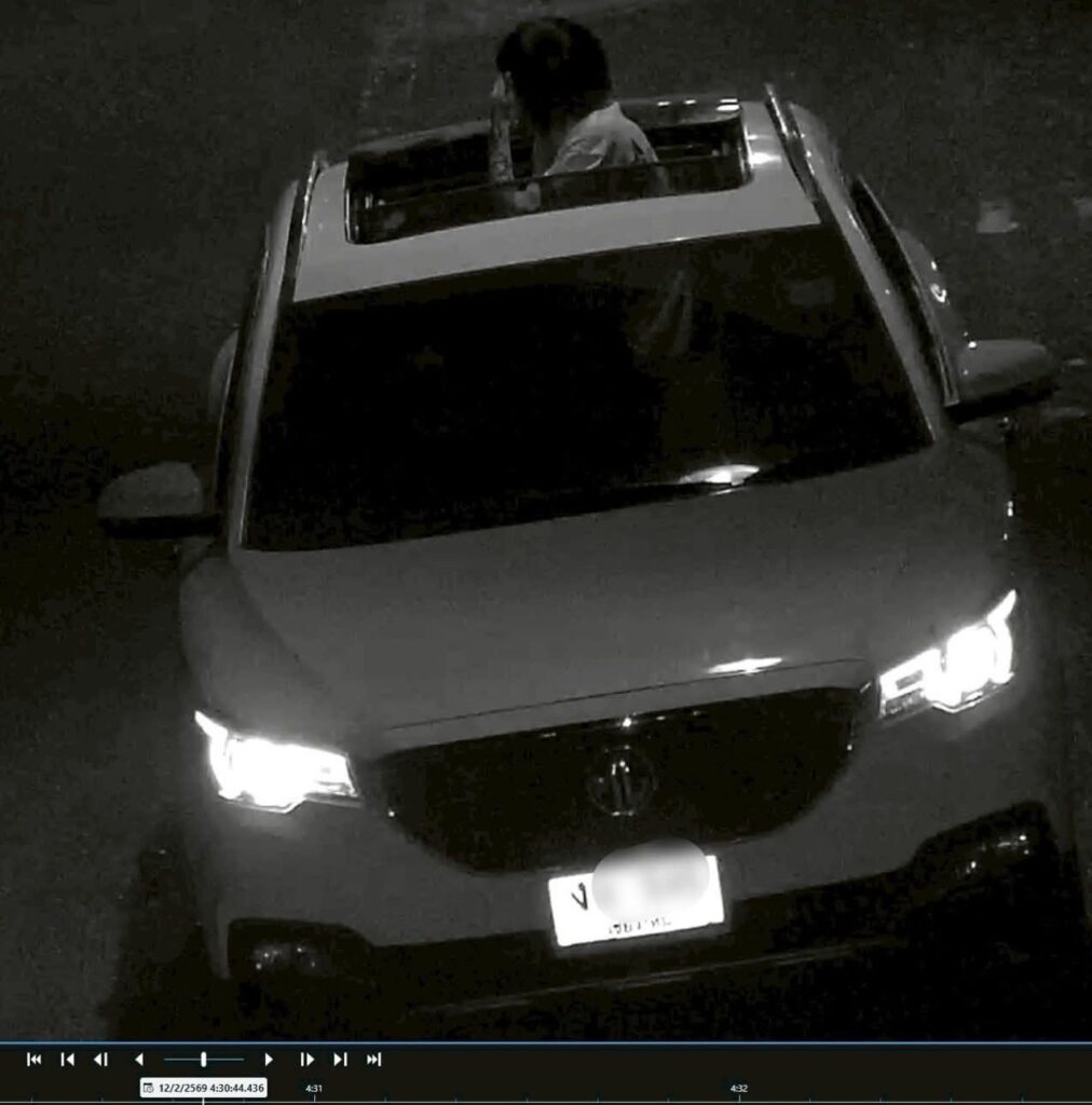 เวลา 14.00 น. วันเดียวกัน จากการไล่กล้องวงจรปิด พบรถยนต์ที่ใช้ก่อเหตุเป็นรถเก๋งยี่ห้อ MG สีขาว ทะเบียน งษ 545 เชียงใหม่ ติดตามพบจอดอยู่บ้านเลขที่ 3/113 ถ.มหิดล ซ.5 ต.หนองหอย อ.เมืองเชียงใหม่ จึงเชิญตัว นายรุจิรพงศ์ อายุ 20 ปี ผู้ขับขี่ มาสอบสวน