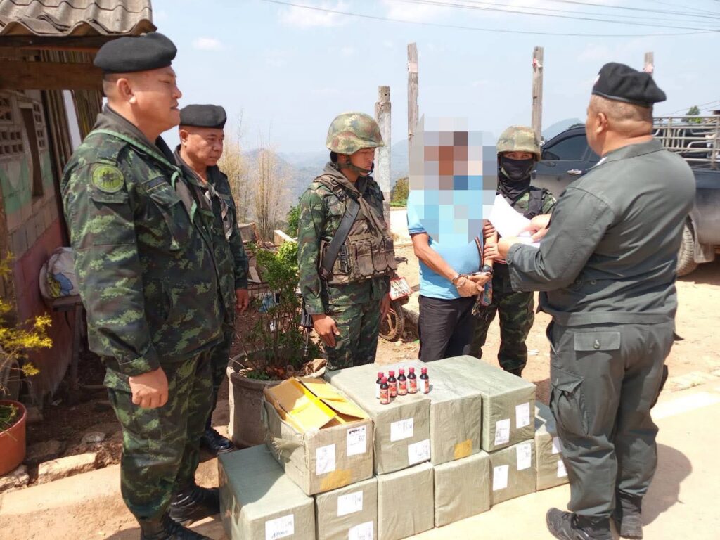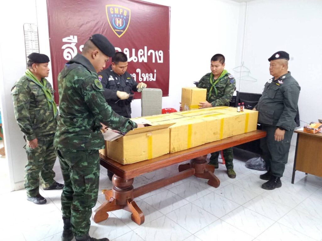 เมื่อวันที่ 27 กุมภาพันธ์ 2569 กองกำลังผาเมือง โดย กองบังคับการควบคุมผาดำ หน่วยเฉพาะกิจไชยานุภาพ ได้รับการประสานจาก กองร้อยตำรวจตระเวนชายแดนที่ 334 ว่าจะมีการลักลอบนำยาแก้ไอ ส่งออกนอกราชอาณาจักร ในพื้นที่ อำเภอฝาง จังหวัดเชียงใหม่ จึงได้จัดกำลัง 1 ชุดปฏิบัติการ บูรณาการ ร่วมกับ เจ้าหน้าที่ตำรวจฝ่ายสืบสวน สถานีตำรวจภูธรฝาง ทำการเฝ้าติดตาม จนกระทั่งวันที่ 28 กุมภาพันธ์ 2569 เวลา 12.00 น. ชุดปฏิบัติการ ได้ตรวจพบบุคคลนำกล่องพัสดุมาเตรียมไว้ เพื่อที่จะนำออกนอกราชอาณาจักรโดยผิดกฏหมาย บริเวณ ช่องทางนอแล ตำบลม่อนปิ่น อำเภอฝาง จังหวัดเชียงใหม่ จนท.จึงแสดงตัวเพื่อขอตรวจค้น