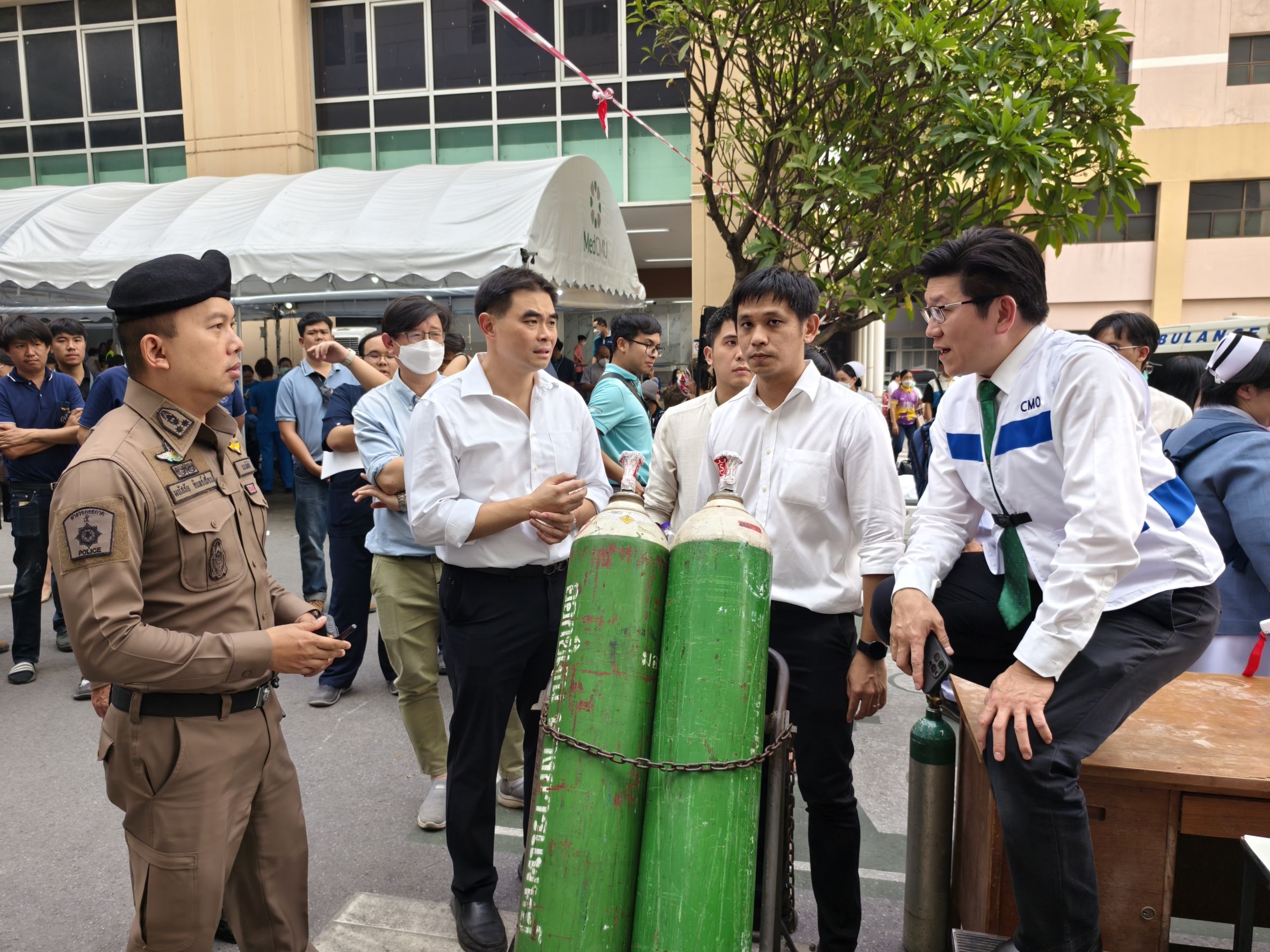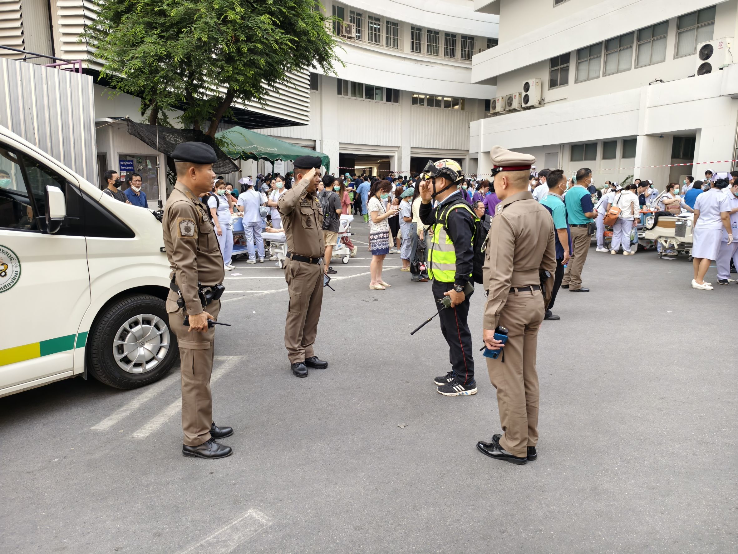 บูรณาการร่วม ฝ่ายปกครอง จนท.แพทย์ รพ.มหาราชนครเชียงใหม่ หน่วยกู้ชีพ กู้ภัย ร่วมอำนวยความสะดวกและดูแลความปลอดภัยให้กับประชาชนผู้มาใช้บริการโรงพยาบาลมหาราชฯ ซึ่งได้มีการเคลื่อนย้ายผู้ป่วยลงมาจากตึกพักรักษาผู้ป่วยเพื่อตรวจสอบโครงสร้างภายในตัวอาคารหลังจากเกิดเหตุการณ์แผ่นดินไหว เมื่อช่วงเวลา 13.22 น. ที่ผ่านมา