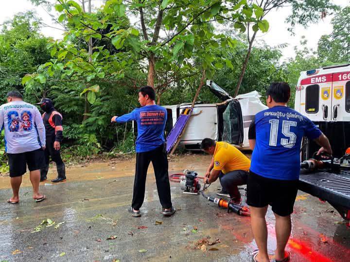 เมื่อเวลา 16.50 น. วันที่ 27 พฤษภาคม 2568 กู้ภัยเฉพาะกิจ จังหวัดเชียงใหม่ รายงาน เกิดเหตุรถกระบะเสียหลักชนต้นไม้ บริเวณบ้านน้ำพุ ตำบลป่าสัก จังหวัดลำพูน รีบเข้าตรวจสอบ พร้อมรถอุปกรณ์ตัด-ถ่าง 810 จากหน่วยงานกู้ภัยในพื้นที่ พบรถกระบะอีซูซุ สีขาว สภาพพังยับหลังพุ่งชนต้นไม้และพลิกคว่ำกลางไหล่ทาง