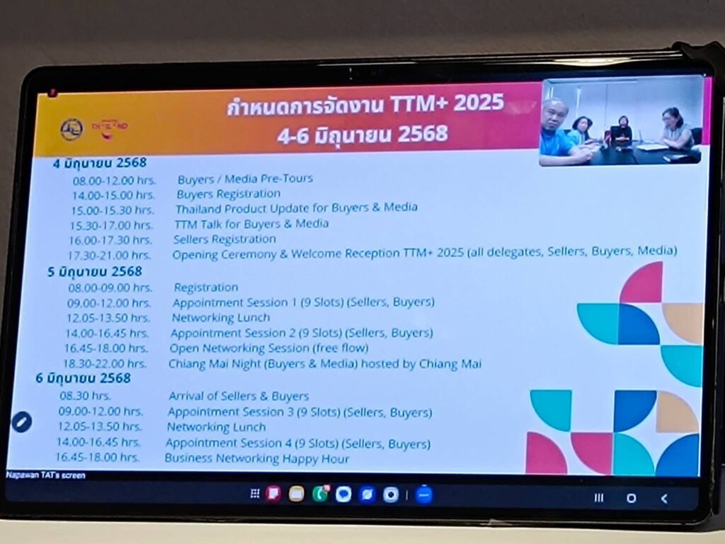 ในครั้งนี้ ทางสมาคมกอล์ฟรีสอร์ทภาคเหนือเข้าได้ร่วม ประชุมเพื่อติดตามความคืบหน้าการจัดงาน Thailand Travel Mart Plus(TTM+) 2025 ครั้งที่ 6 ร่วมกับ ททท.สำนักงานเชียงใหม่ ในวันอังคารที่ 27 พฤษภาคม 2568 เวลา 15 นาฬิกา 30 นาที ถึง 17:00 นาฬิกา โดยจัดประชุม(onsite) ณ ห้องประชุมศูนย์ปฏิบัติการจังหวัดเชียงใหม่(POC) ชั้น 3 อาคารอำนวยการศาลากลางจังหวัดเชียงใหม่ ผ่านระบบการประชุมทางไกล(Online) ช่องทาง Zoom Meeting ID: 990 9672 2897 Passcode: 962155