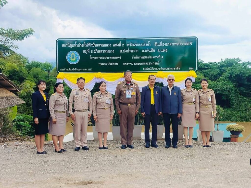 สำหรับโครงการสถานีสูบน้ำด้วยไฟฟ้าบ้านสวนหลวงแห่งที่ 2 พร้อมระบบส่งน้ำอันเนื่องมาจากพระราชดำริ ได้เริ่มก่อสร้าง ปี พ.ศ. 2567 ดำเนินการแล้วเสร็จ ปี พ.ศ. 2568 ซึ่งมีลักษณะโครงการ สถานีสูบน้ำด้วยไฟฟ้าพร้อมระบบส่งน้ำ สูบน้ำจากแม่น้ำยม ติดตั้งเครื่องสูบน้ำชนิดหอยโข่ง อัตราการสูบน้ำ 0.35 ลบ.ม.ต่อวินาที จำนวน1เครื่อง โดยใช้ท่อส่งน้ำ PVC ขนาด ⌀ 500 มม. ความยาวรวม 1,663 เมตร พร้อมอาคารประกอบ บ่อพักน้ำ ขนาด 30 ลบ.ม. จำนวน 2 แห่ง และมีจุดจ่ายน้ำ จำนวน 3 แห่ง โดย นายประสิทธิ์ ยินดี ราษฎรบ้านสวนหลวง หมู่ที่ 8 ตำบลปงป่าหวาย อำเภอเด่นชัย จังหวัดแพร่ ได้ขอพระราชทานโครงการฯ เพื่อช่วยเหลือราษฎรบ้านสวนหลวง หมู่ที่ 2 และหมู่ที่ 8 ตำบลปงป่าหวาย ซึ่งขาดแคลนน้ำสำหรับเกษตรปัญหาภัยแล้งและอุปโภคบริโภค เมื่อวันที่ 5 สิงหาคม พ.ศ. 2559 และทรงพระกรุณาโปรดเกล้าฯ รับโครงการก่อสร้างสถานีสูบน้ำด้วยไฟฟ้าบ้านสวนหลวง พร้อมระบบส่งน้ำไว้เป็นโครงการอันเนื่องมาจากพระราชดำริ เมื่อวันที่ 17 มิถุนายน พ.ศ. 2563 ซึ่งมีพื้นที่ชลประทาน 1,000 ไร่ สามารถส่งน้ำสนับสนุนพื้นที่เกษตร