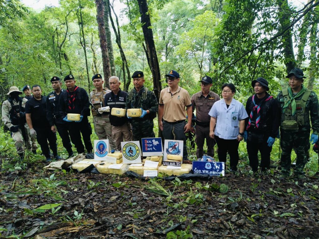 จนกระทั่ง เมื่อวันที่ 28 มิถุนายน 2568 เวลา 08.30 น. ได้ตรวจพบกลุ่มบุคคลต้องสงสัยประมาณ 4-6 คน เดินเท้าสะพายกระสอบดัดแปลงเป็นเป้มาตามเส้นทางในภูมิประเทศดังกล่าว จึงได้แสดงตัวเพื่อขอตรวจค้น แต่กลุ่มขบวนการฯ ใช้อาวุธไม่ทราบชนิดยิงมายังฝ่ายเจ้าหน้าที่จนเกิดการปะทะ ประมาณ 5 นาที ผลการปะทะ ฝ่ายเจ้าหน้าที่ปลอดภัย จึงได้จัดกำลังเพิ่มเติมจำนวน 2 ชุดปฏิบัติการ วางกำลังเข้าควบคุมพื้นที่เกิดเหตุไว้ และได้ทำการเข้าตรวจสอบของกลางในพื้นที่เกิดเหตุ ตรวจพบกระสอบดัดแปลงเป็นเป้สะพายหลัง จำนวน 4 เป้ ภายในบรรจุยาเสพติดให้โทษ ประเภท 1 (ยาบ้า) กระสอบละ 120,000 เม็ด จำนวน 3 กระสอบ และ กระสอบละ 140,000 เม็ด จำนวน 1 กระสอบ รวมทั้งสิ้นประมาณ 500,000 เม็ด กลุ่มขบวนการฯ เสียชีวิต 1 ราย