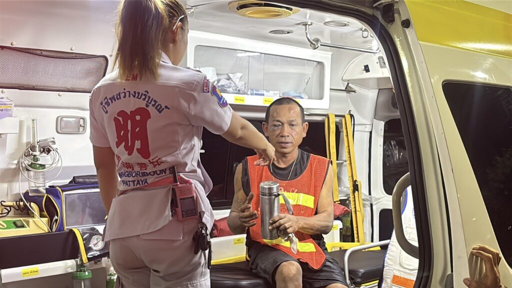 เมื่อเวลา 02.00 น. วันที่ 28 กรกฎาคม 2568 ศูนย์วิทยุหน่วยกู้ภัยสว่างบริบูรณ์ธรรมสถานเมืองพัทยา รับแจ้งเหตุทำร้ายร่างกาย มีผู้ได้รับบาดเจ็บ เหตุเกิดภายในสถานีน้ำมัน ภายในซอยเทพประสิทธิ์ ต.หนองปรือ อ.บางละมุง จ.ชลบุรี หลังรับแจ้ง จึงนำกำลังเจ้าหน้าที่อาสาสมัครกู้ภัยฯ รีบไปตรวจสอบ