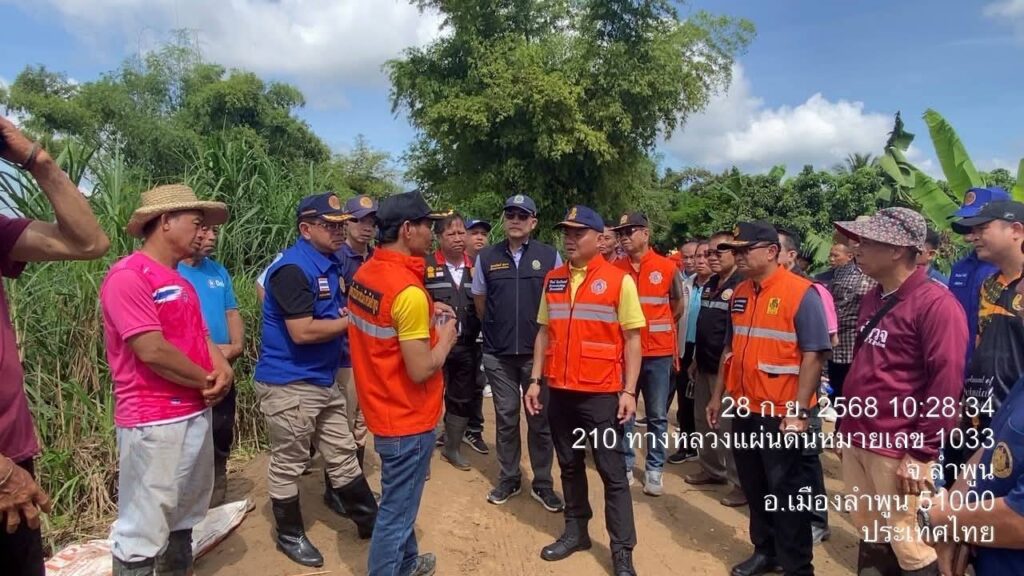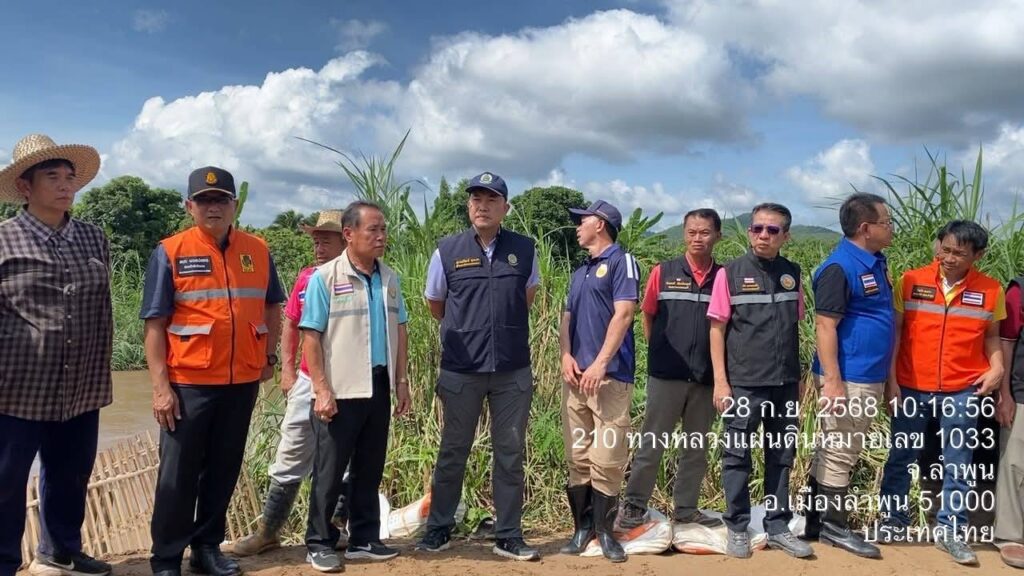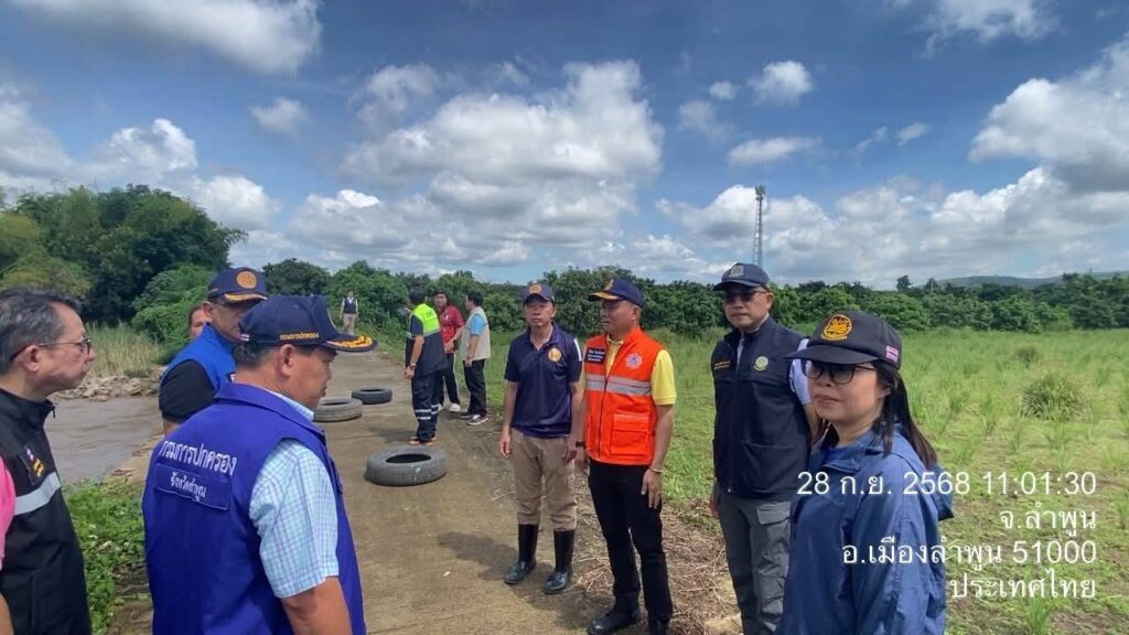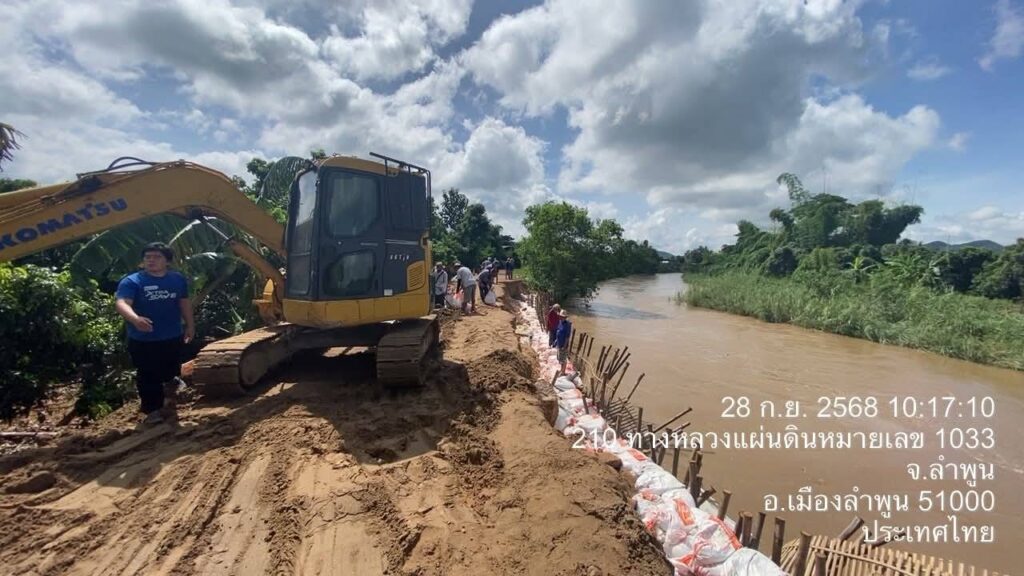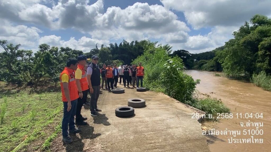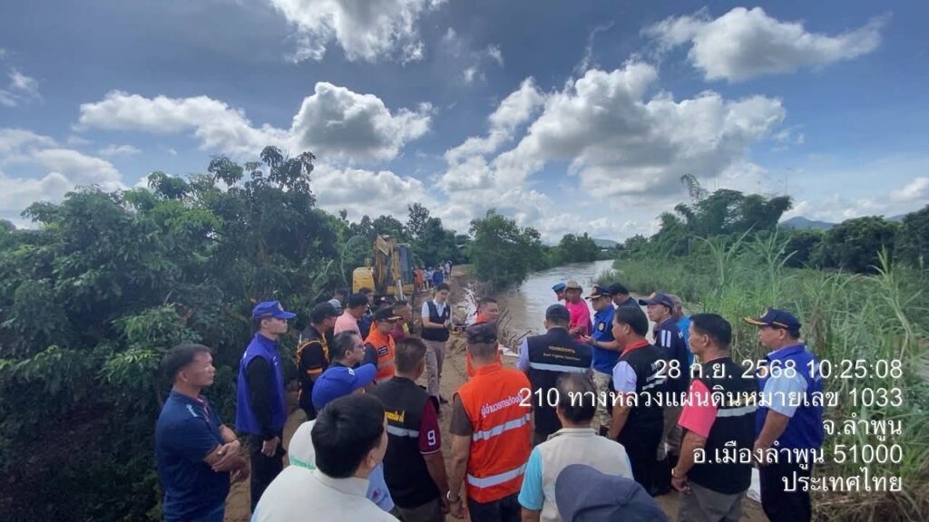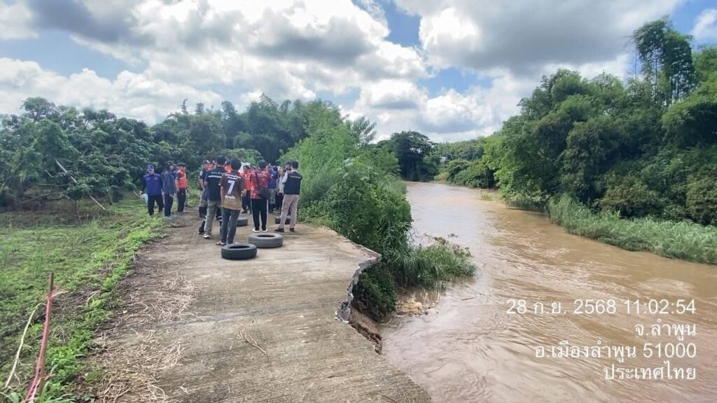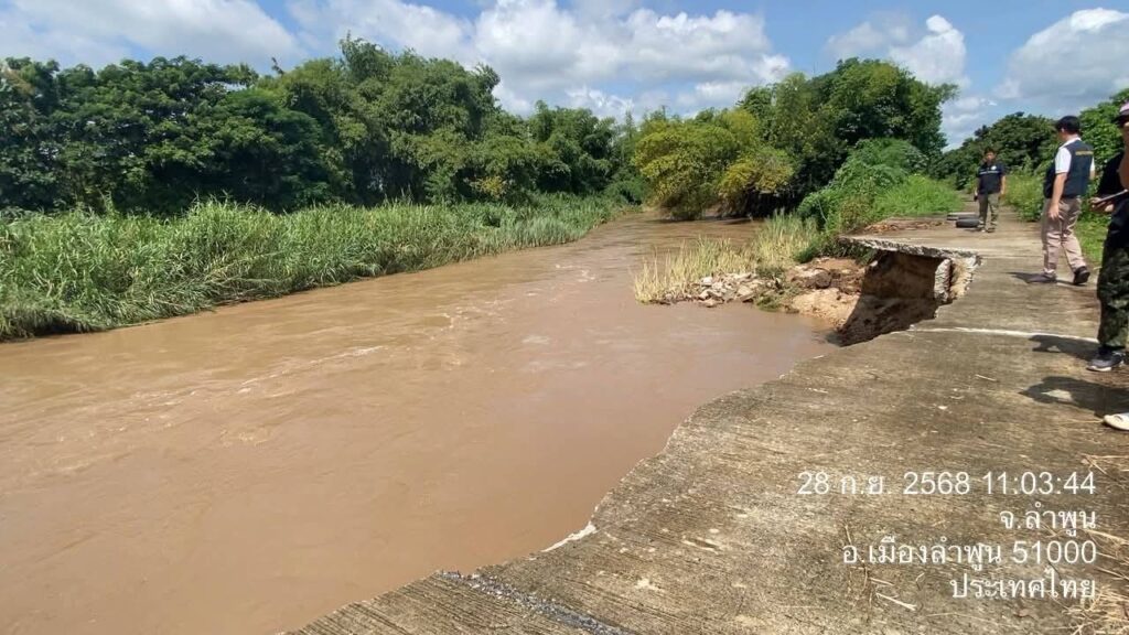 วันที่ 28 กันยายน 2568 นายสุภรณ์วัฒน์ สุรการ ผู้อำนวยการโครงการชลประทานลำพูน ลงพื้นที่ร่วมกับ นายวิวัฒน์ อินทร์ไทยวงศ์ ผู้ว่าราชการจังหวัดลำพูน พร้อมด้วย นายโยธิน ประสงค์ความดี รองผู้ว่าราชการจังหวัดลำพูน และคณะ ติดตามสถานการณ์ถนนทรุดตัวเนื่องจากถูกน้ำเซาะตลิ่ง บริเวณถนนเลียบลำน้ำทา บ้านป่าตองหลวง ม.13 และบ้านฝั่งหมิ่น ม. 7 ต.เหมืองจี้ อ.เมืองลำพูน จ.ลำพูน เพื่อร่วมกันประเมินความเสียหายและหาแนวทางแก้ไขปัญหาในระยะเร่งด่วนและระยะยาว