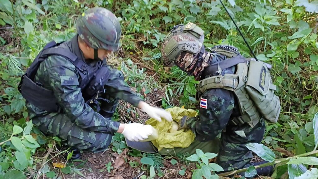 เมื่อวันที่ 25 ตุลาคม 2568 กองร้อยทหารม้าที่ 4 หน่วยเฉพาะกิจไชยานุภาพ กองกำลังผาเมือง จัดกำลังพล จำนวน 1 ชุดปฏิบัติการ ทำการลาดตระเวนเฝ้าตรวจ เพื่อป้องกันและสกัดกั้นการกระทำผิด ตามพระราชบัญญัติให้ใช้ประมวลกฎหมายยาเสพติด พ.ศ. 2564 บริเวณ บ้านม่วงชุม หมู่ที่ 10 ตำบลม่อนปิ่น อำเภอฝาง จังหวัดเชียงใหม่ หลังจากสืบทราบมาว่าจะมีการลักลอบลำเลียงยาเสพติดผ่านมายังบริเวณพื้นที่ดังกล่าว จนกระทั่ง เมื่อวันที่ 27 ตุลาคม 2568 เวลา 06.49 น. ได้ตรวจพบกลุ่มขบวนการลำเลียงยาเสพติดเดินเข้ามาตามเส้นทางสะพานปางตอง หน่วยจึงจัดกำลัง จำนวน 1 ชุดปฏิบัติการ เข้าสกัดกั้นบริเวณเส้นทางดังกล่าว และเมื่อเวลาประมาณ 07.25 น. ตรวจพบกลุ่มขบวนการฯ จำนวนประมาณ 8 – 9 คน แบกเป้สะพายหลังสีเขียว หน่วยจึงให้สัญญาณให้หยุด แต่กลุ่มขบวนการฯ ใช้อาวุธไม่ทราบชนิดยิงมายังฝ่ายเจ้าหน้าที่ จนเกิดการปะทะ ประมาณ 5 นาที ผลการปฏิบัติ ฝ่ายเจ้าหน้าที่ปลอดภัย กลุ่มขบวนการฯ เสียชีวิต จำนวน 6 ราย พบกระเป๋าเป้สีเขียว จำนวน 8 เป้ ภายในบรรจุยาเสพติด ให้โทษประเภท 1 (ยาบ้า) รวมจำนวนทั้งสิ้น 1,200,000 เม็ด ปืนแก๊ปยาว 1 กระบอก ปืนพกสั้นไทยประดิษฐ์ 1 กระบอก โทรศัพท์มือถือ 3 เครื่อง