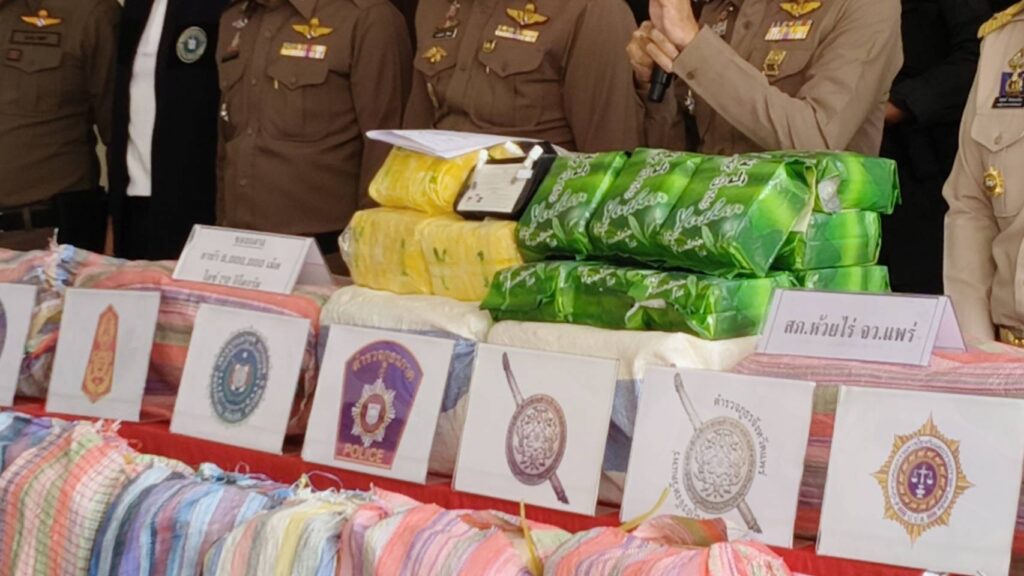 เมื่อวันที่ 29 เม.ย.68 เวลา 11.00 น. ตำรวจภูธรภาค 5 ตามนโยบายรัฐบาล สั่งการให้หน่วยงานของรัฐที่ทำหน้าที่ในการป้องกันและปราบปรามยาเสพติด บูรณาการแก้ไขปัญหายาเสพติดในทุกมิติตำรวจภูธรภาค 5 โดย พล.ต.ท.กฤตธาพล ยี่สาคร ผบช.ภ.5, พล.ต.ต.พิเชษฐ จีระนันตสิน, พล.ต.ต.นพดล กรึงไกร, พล.ต.ต.พรพิทักษ์ รู้ยืนยง, พล.ต.ต.ธนะรัชต์ ชุ่มสวัสดิ์, พล.ต.ต. พิชญา บุญขจร, พล.ต.ต.ธวัชชัย พงษ์วิวัฒนชัย รอง ผบช.ภ.5, พล.ต.ต.วรพงศ์ คำลือ ผบก.สส.ภ.5 และพล.ต.ต.พงษ์เดช คำใจสู้ ผบก.ภ.จว.แพร่ ฝ่ายทหาร นบ.ยส.35 ฝ่ายปกครองผู้แทนผวจ.แพร่ และสำนักงาน ปปส.ภาค 5 ร่วมแถลงข่าวด่านตรวจยาเสพติดห้วยไร่ จับสิบล้อ ขนยาบ้า 6 ล้านเม็ด ไอซ์ 10 กิโลฯ สารภาพเตรียมขับไปส่งภาคกลาง