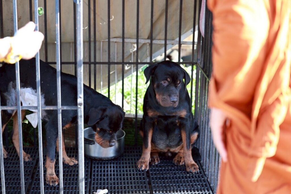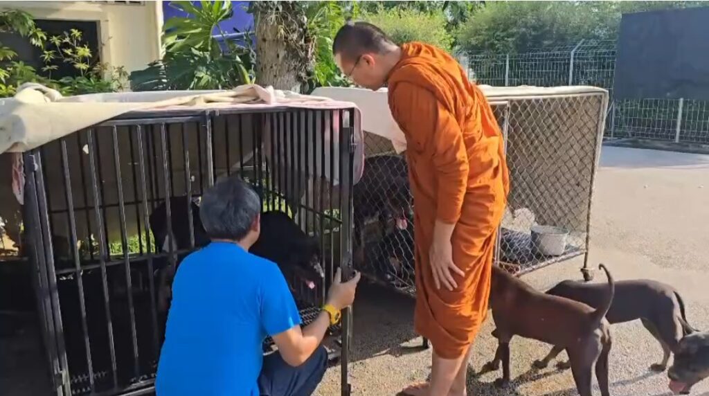 (มีคลิป)เชียงใหม่-พระครูอ๊อด วัดเจดีย์หลวง เชียงใหม่ เยี่ยมสุนัขร็อตไวเลอร์ 4 ตัวถูกทิ้งกลางป่า พร้อมมอบอาหารสัตว์กว่า 1,200 กิโลกรัม