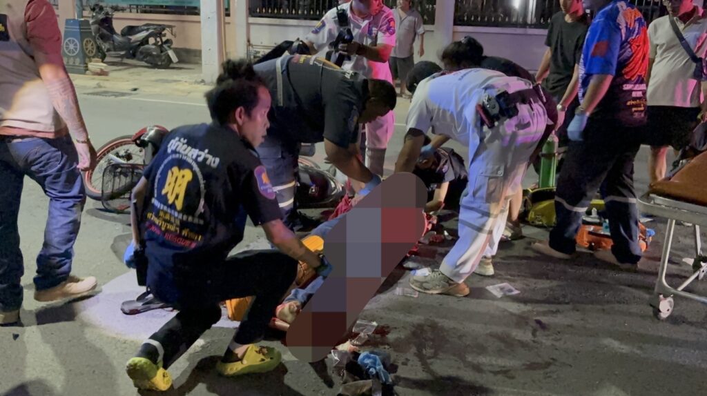 เมื่อเวลา 00.06 น.วันที่ 29 กรกฎาคม 2568 ศูนย์วิทยุหน่วยกู้ภัยสว่างบริบูรณ์ธรรมสถานเมืองพัทยา รับแจ้งอุบัติเหตุรถจักรยานยนต์ เฉี่ยวชนกันมีผู้ได้รับบาดเจ็บ เหตุเกิดที่บริเวณปากซอยมาบยายเลีย 34 ต.หนองปรือ อ.บางละมุง จ.ชลบุรี หลังรับแจ้ง จึงรีบนำกำลังเจ้าหน้าที่อาสาสมัครกู้ภัยฯ รีบไปตรวจสอบ