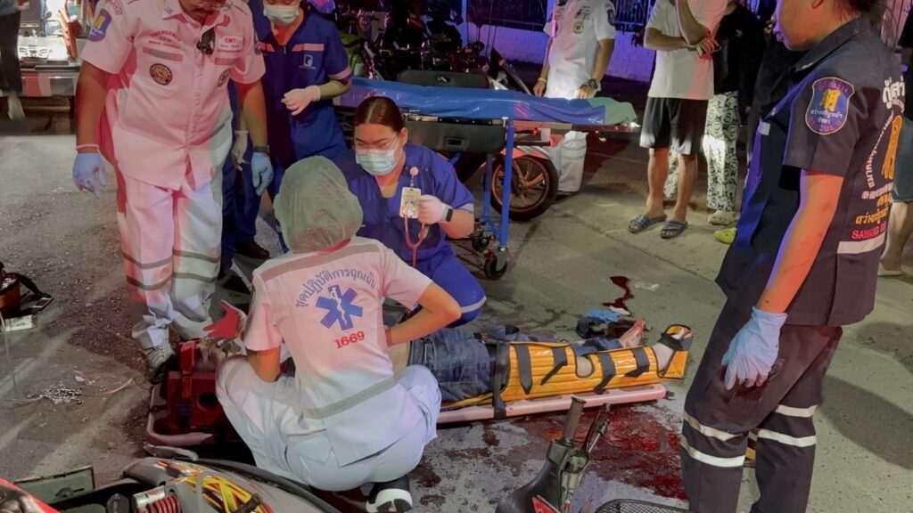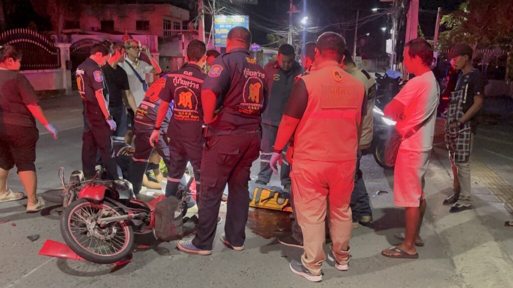 เมื่อเวลา 00.06 น.วันที่ 29 กรกฎาคม 2568 ศูนย์วิทยุหน่วยกู้ภัยสว่างบริบูรณ์ธรรมสถานเมืองพัทยา รับแจ้งอุบัติเหตุรถจักรยานยนต์ เฉี่ยวชนกันมีผู้ได้รับบาดเจ็บ เหตุเกิดที่บริเวณปากซอยมาบยายเลีย 34 ต.หนองปรือ อ.บางละมุง จ.ชลบุรี หลังรับแจ้ง จึงรีบนำกำลังเจ้าหน้าที่อาสาสมัครกู้ภัยฯ รีบไปตรวจสอบ