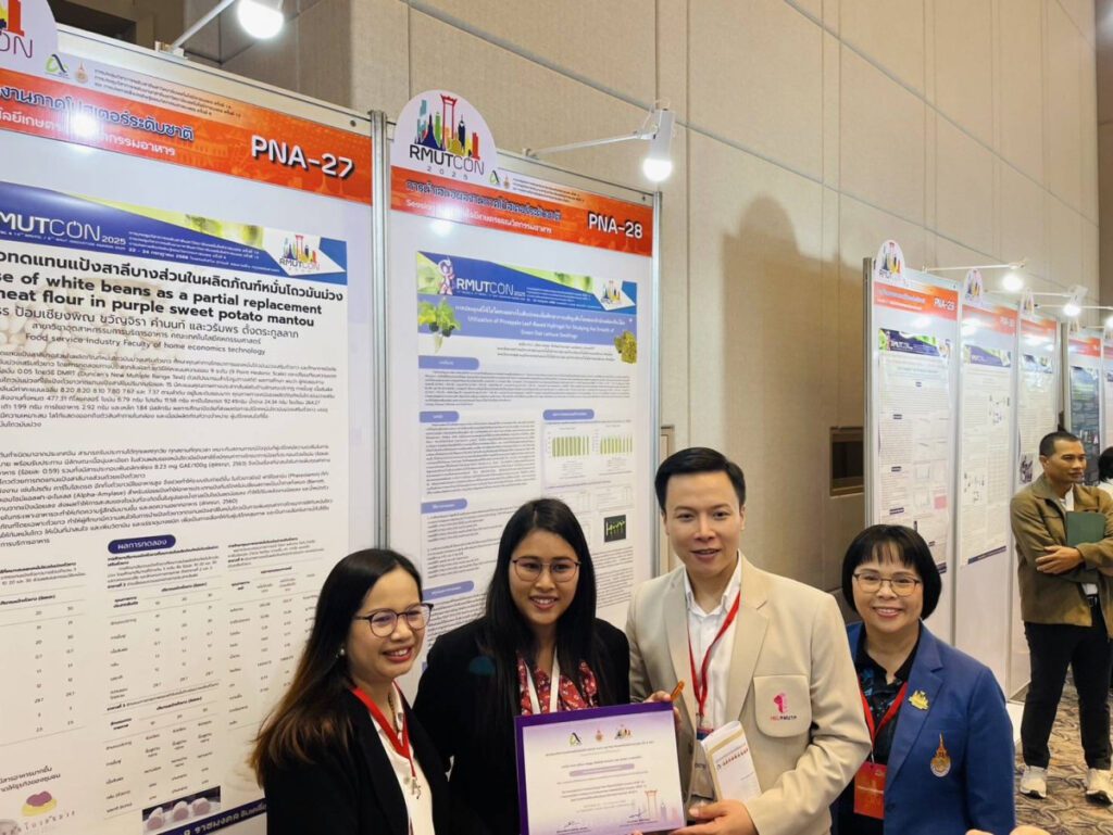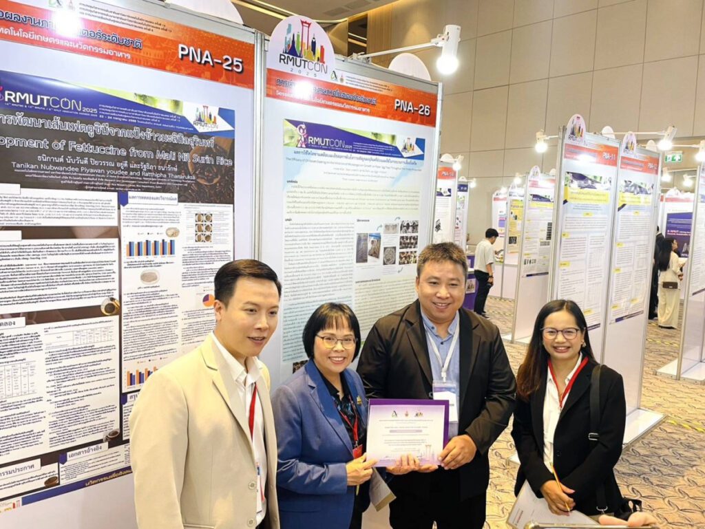 อาจารย์อรณิช คำยง จากสาขาพืชศาสตร์ มทร.ล้านนา พิษณุโลก ได้รับรางวัลระดับดีเด่น (Gold Award) ในการประชุมวิชาการระดับชาติมหาวิทยาลัยเทคโนโลยีราชมงคล ครั้งที่ 14 (RMUTCON 2025) ระหว่างวันที่ 22-24 กรกฎาคม 2568 ณ โรงแรมอัศวิน แกรนด์ คอนเวนชั่น หลักสี่ กรุงเทพมหานคร จากผลงานวิจัยเรื่อง “การประยุกต์ใช้ไฮโดรเจลจากใบสับปะรดเพื่อศึกษาการเจริญเติบโตของกล้าผักสลัดกรีนโอ๊ค” งานวิจัยชิ้นนี้เป็นส่วนหนึ่งของโครงการวิจัย “วัสดุเชิงประกอบไฮโดรเจลจากเศษเหลือทิ้งการปลูกสับปะรดสำหรับการประยุกต์ใช้ในงานเกษตร” และ รางวัลระดับดีมาก (Silver Award) อาจารย์ ดร.อรรถพล ตันไสว จากสาขาวิทยาศาสตร์ มทร.ล้านนา พิษณุโลก ได้รับรางวัลระดับดีมาก (Silver Award) จากผลงานวิจัยเรื่อง “ผลการใช้ไคโตซานเคลือบแผงไข่ต่อการยับยั้งการเจริญของจุลินทรีย์บนแผงไข่ ในกระบวนการเลี้ยงจิ้งหรีด”