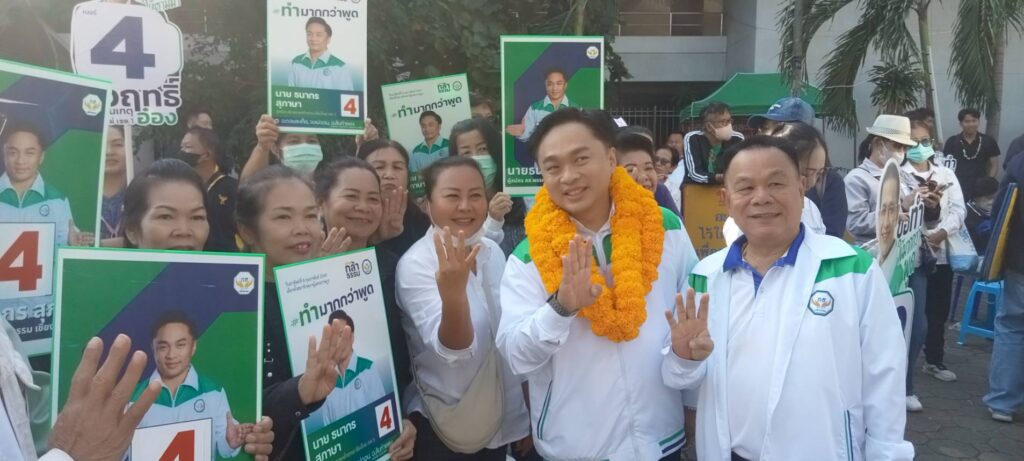 นายธนากร สุภาษา หรือน้องเต้ เบอร์ 4 อายุ 37 ปี เป็นคนต้นเปา อำเภอสันกำแพง โดยกำเนิดมีการลงพื้นที่ ขอคะแนนเสียงชาวบ้าน ด้วยความบริสุทธิ์ใจ เน้นอาสาทำงานร่วมกับประชาชน เป็นคนที่ชาวบ้านเข้าถึงได้ง่าย ทำงานจริงจัง