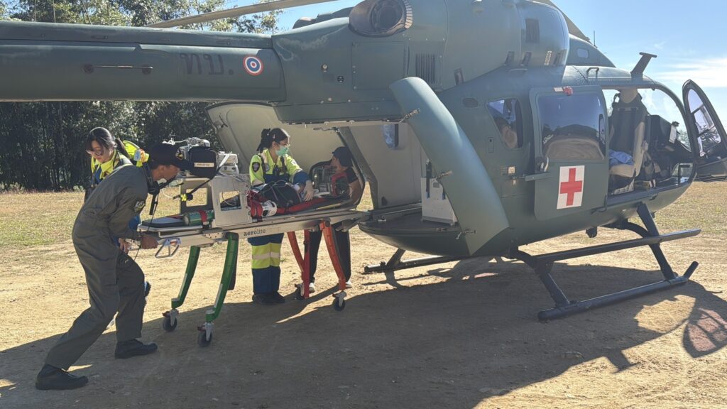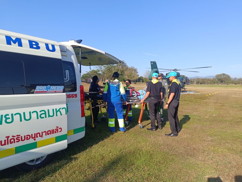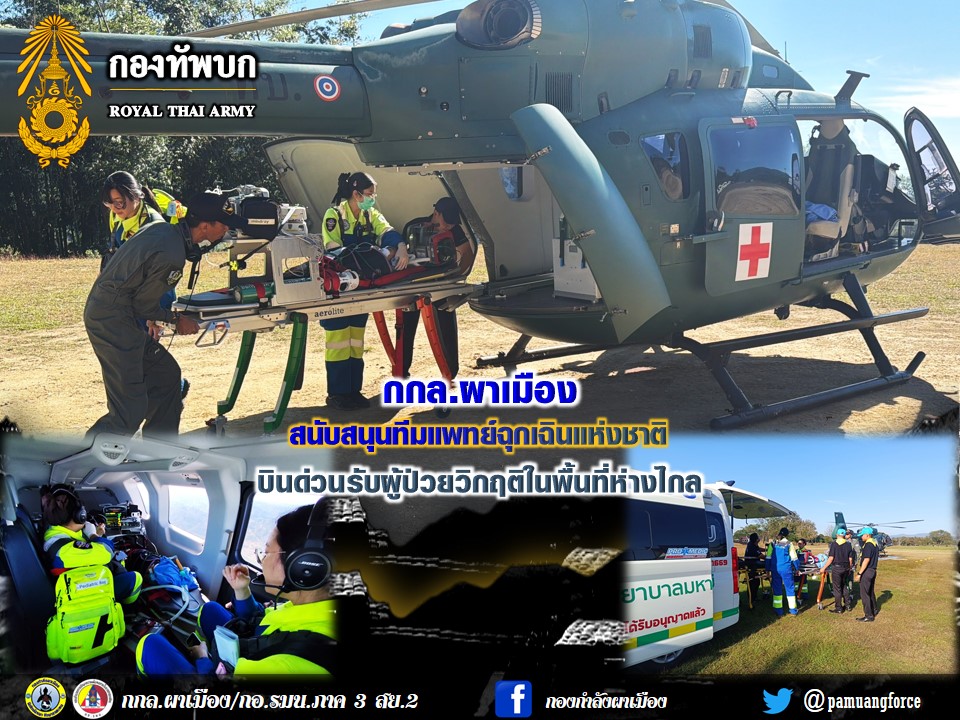 (มีคลิป)กกล.ผาเมือง สนับสนุนทีมแพทย์ฉุกเฉินแห่งชาติ บินด่วนรับผู้ป่วยวิกฤติในพื้นที่ห่างไกล
