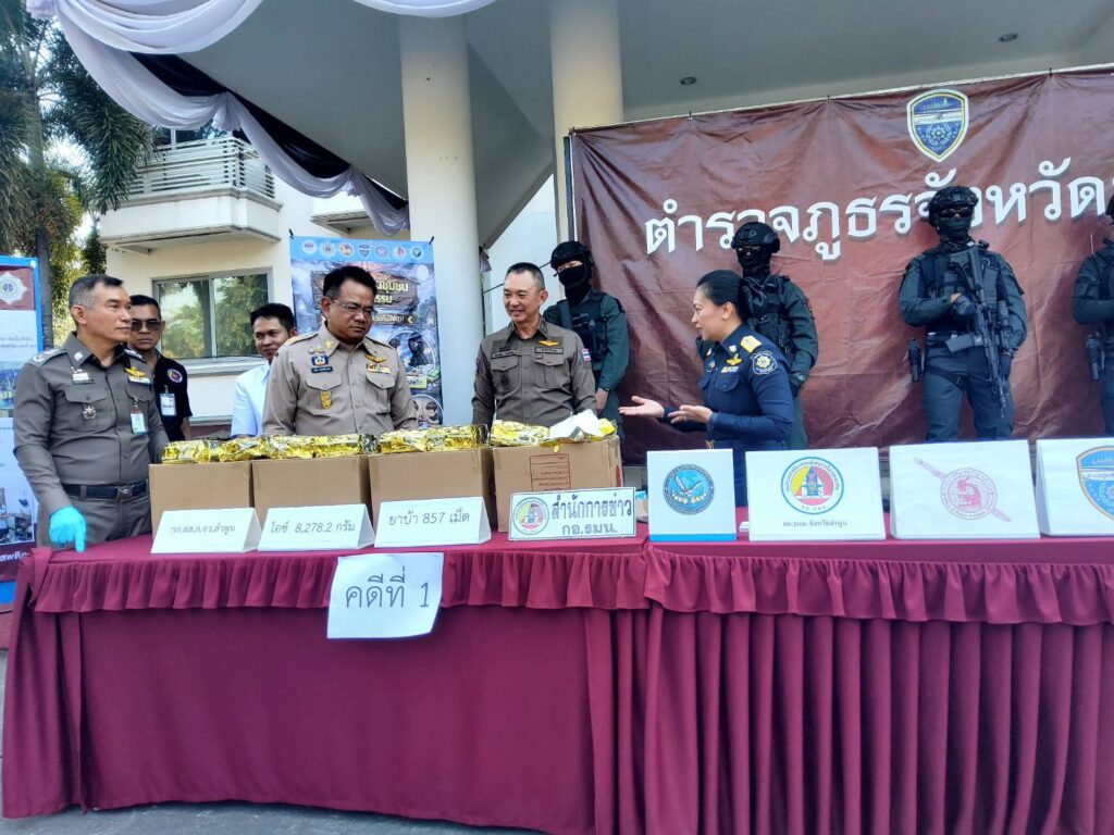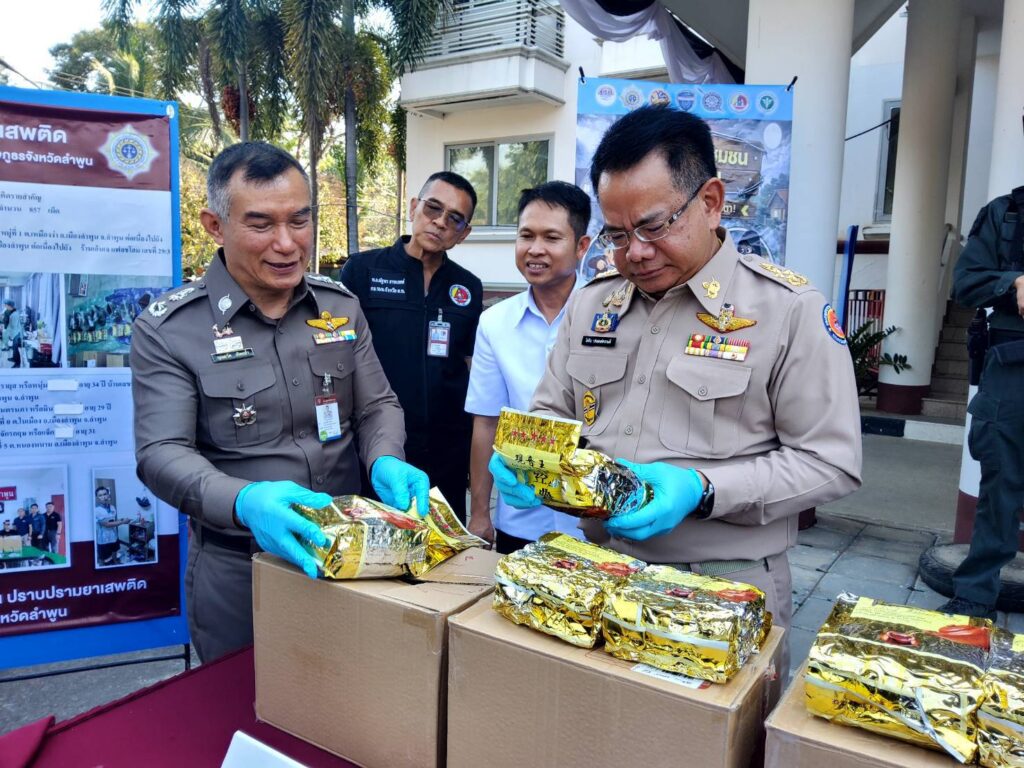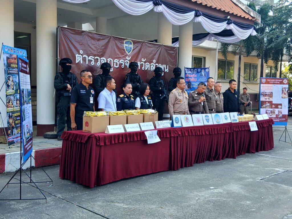 วันนี้(29 ม.ค. 69) ที่ตำรวจภูธรจังหวัดลำพูน นายโยธิน ประสงค์ความดี รองผู้ว่าราชการจังหวัดลำพูน พร้อมด้วยพลตำรวจตรี บุณยวัต เกิดกล่ำ ผู้บังคับการตำรวจภูธรจังหวัดลำพูน, พันตำรวจเอก พชรพล วงศ์รจิต รอง ผู้บังคับการตำรวจภูธรจังหวัดลำพูน(รับผิดชอบงานยาเสพติด) พันตำรวจเอก ณัฐพล จันมะโน ผู้กำกับการสืบสวน ภูธรจังหวัดลำพูน และ พันตำรวจโท นริช สอนดิษฐ ผู้อำนวยการสำนักงานป้องกันและปราบปรามยาเสพติด(ป.ป.ส.)ภาค 5, ผู้แทนจากกองอำนวยการรักษาความมั่นคงภายในจังหวัดลำพูน, เจ้าหน้าที่พิสูจน์หลักฐาน ร่วมกันแถลงข่าวการจับกุมยาเสพติดรายสำคัญ ตามนโยบายรัฐบาล นายอนุทิน ชาญวีระกุล นายกรัฐมนตรีและรัฐมนตรีว่าการกระทรวงมหาดไทย สั่งการให้หน่วยงานของรัฐขับเคลื่อนนโยบายการป้องกันปราบปราม และแก้ไขปัญหายาเสพติดภายใต้นโยบาย “รวมพลังรักศรัทธาแก้ปัญหายาเสพติดแบบบูรณาการ Quick Big Win ในทุกพื้นที่