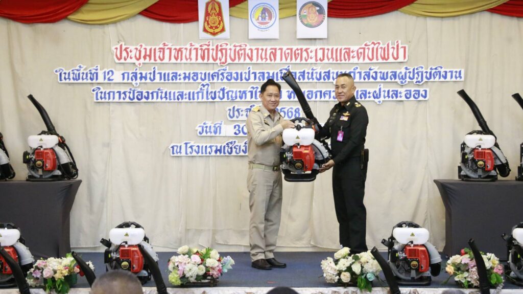 เชียงใหม่-ศูนย์อำนวยการป้องกันและแก้ไขปัญหาไฟป่า หมอกควัน และฝุ่นละอองภาค 3 ส่วนหน้า เผยผลแก้ปัญหาไฟป่า-หมอกควันเหนือ ปี 2568 สามารถลดจุดความร้อนลงร้อยละ 19 แต่พื้นที่เผาไหม้ยังพุ่งสูงกว่า 1.5 ล้านไร่ พร้อมมอบเครื่องเป่าลมสนับสนุนการปฏิบัติงานของกำลังพลในการป้องกันและแก้ไขปัญหาไฟป่าอย่างต่อเนื่อง