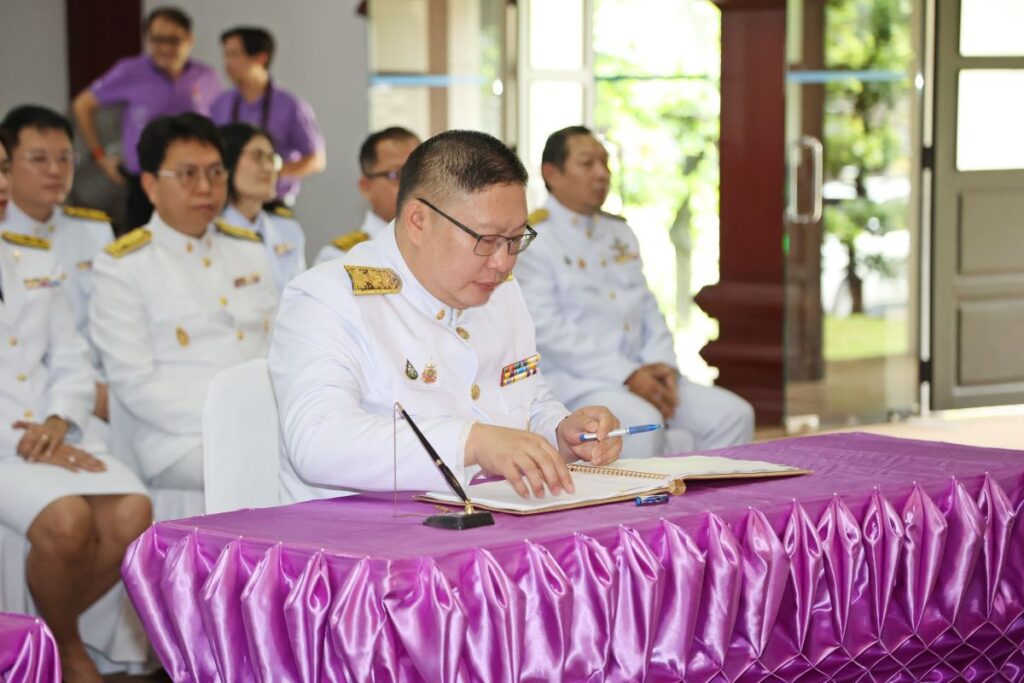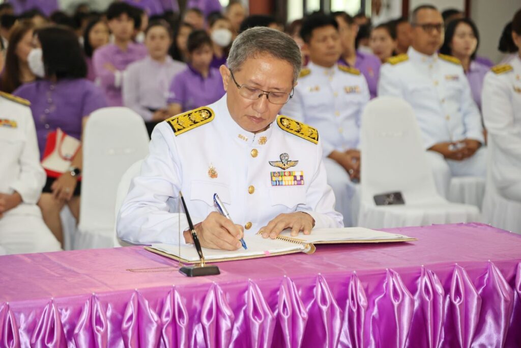 โดยประธานในพิธี เปิดกรวยดอกไม้ กล่าวถวายพระพรชัยมงคลและร่วมร้องเพลงสรรเสริญพระบารมี จากนั้นประธานในพิธีนำผู้ร่วมพิธีร่วมลงนามถวายพระพรชัยมงคลเบื้องหน้าพระฉายาลักษณ์