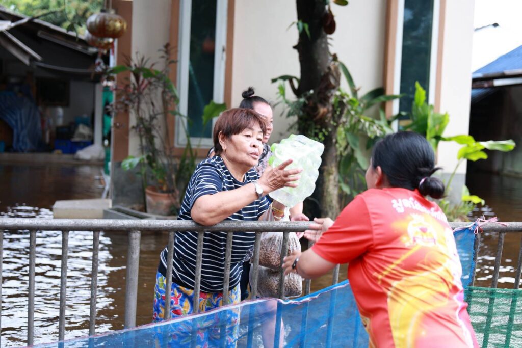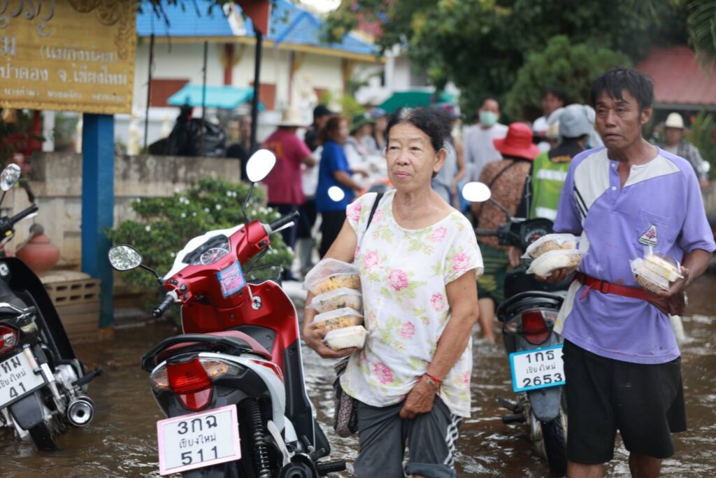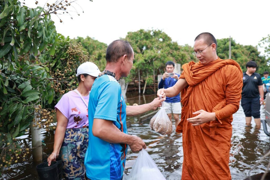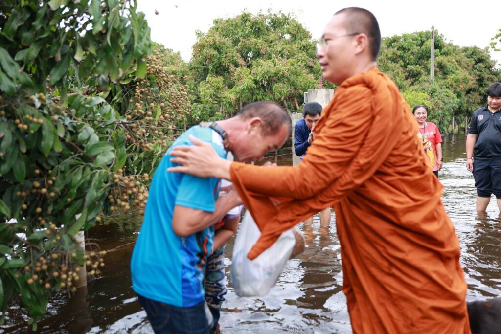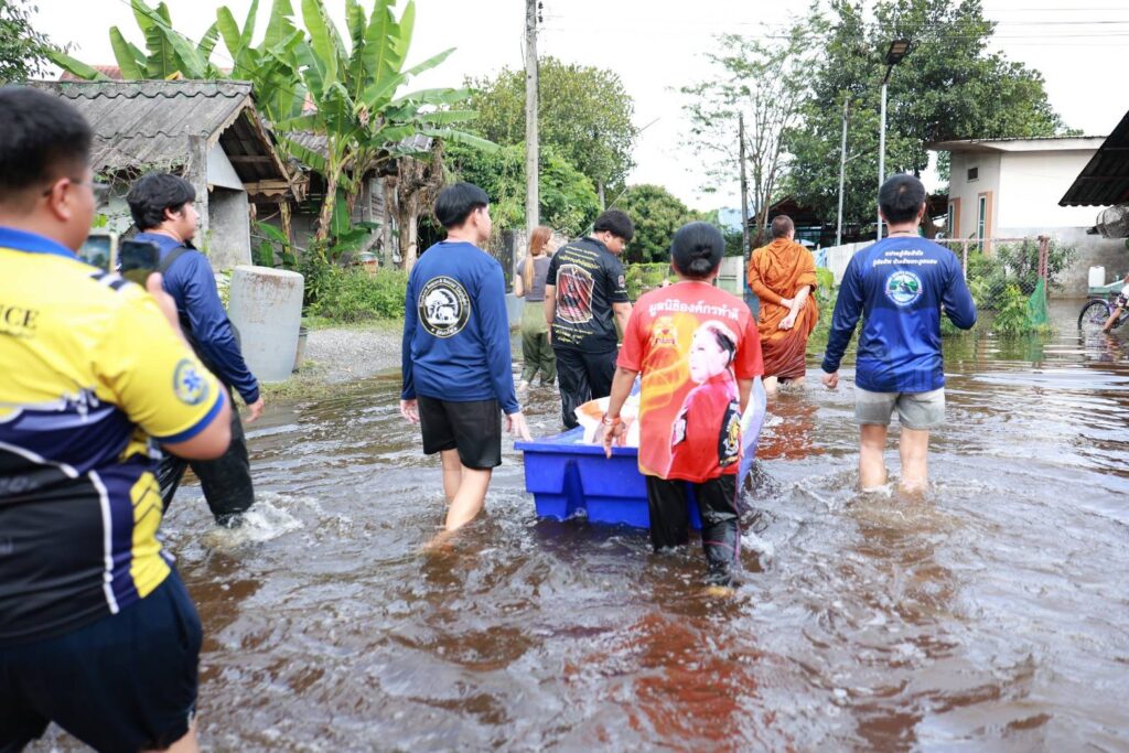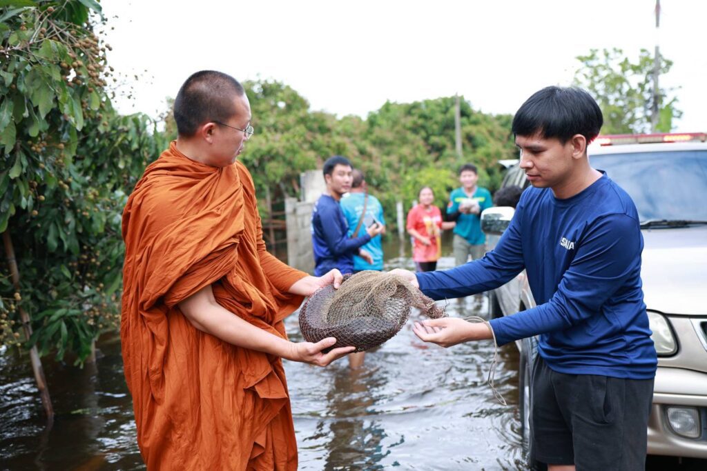 ท่ามกลางระดับน้ำที่ยังท่วมขังในหลายพื้นที่ของอำเภอสันป่าตอง คณะสงฆ์นำโดยพระครูอ๊อด พร้อมทีมอาสาสมัคร ได้ลงพื้นที่โดยใช้เรือลากเสบียง น้ำดื่ม และอาหารเม็ดสำหรับสุนัขและแมว เพื่อแจกจ่ายให้กับประชาชนและสัตว์เลี้ยงที่ได้รับผลกระทบ โดยได้รับการต้อนรับด้วยความซาบซึ้งจากชาวบ้านที่ต่างพากันยกมือไหว้ “อนุโมทนา” ไปตามๆ กัน