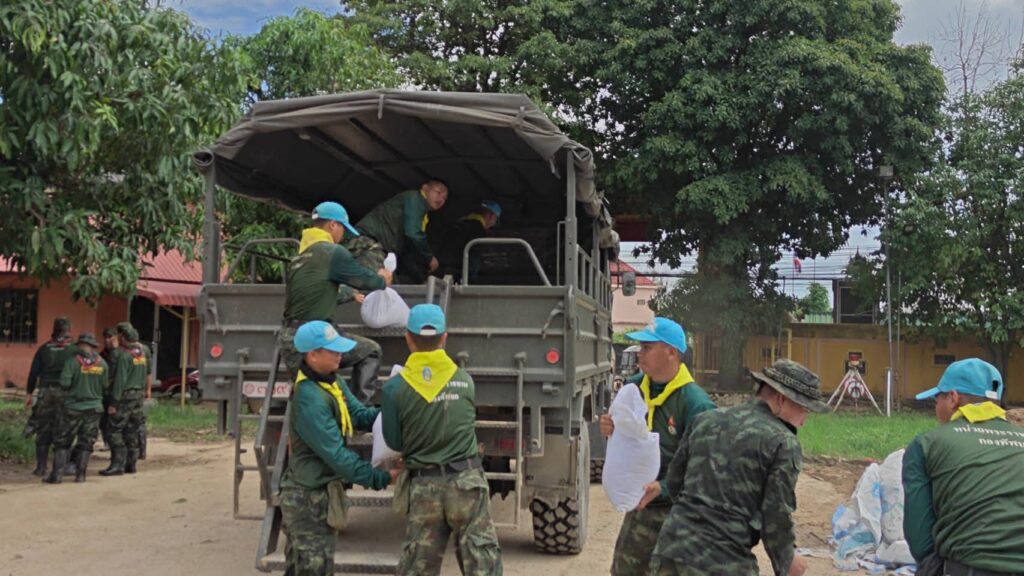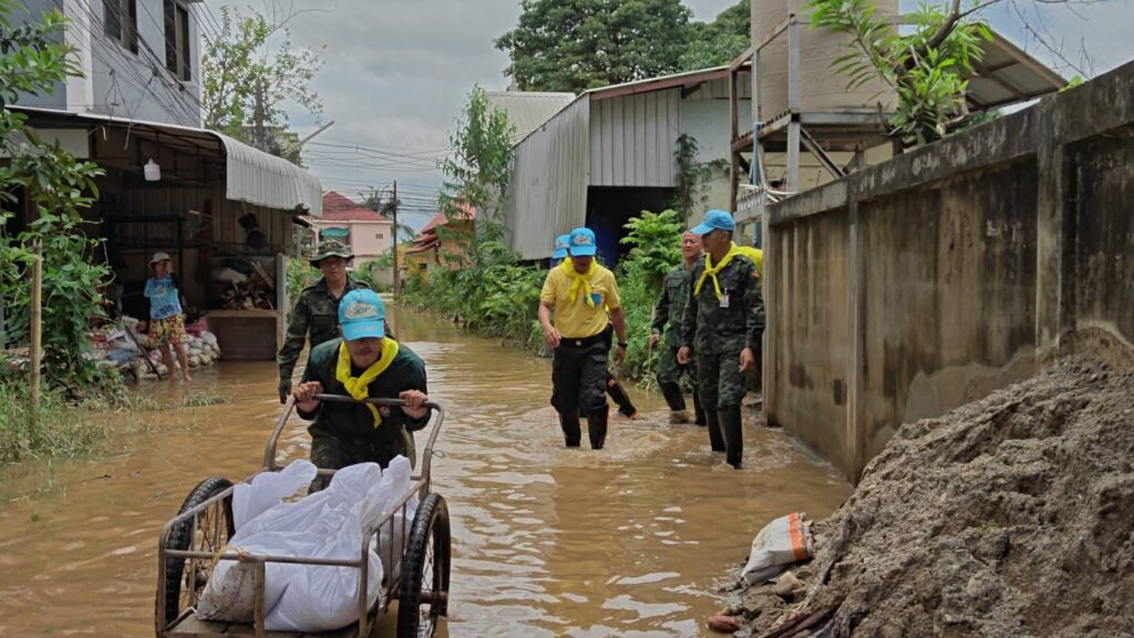 จากนั้น แม่ทัพภาคที่ 3 ในฐานะ ผู้อำนวยการศูนย์อำนวยการจิตอาสาพระราชทานภาค 3 พร้อมด้วย ผู้บัญชาการมณฑลทหารบกที่ 37/ผู้อำนวยการศูนย์อำนวยการจิตอาสาพระราชทานมณฑลทหารบกที่ 37 ลงพื้นที่ชุมชนเกาะทราย ซึ่งเป็นจุดที่มีน้ำทะลักเข้าท่วมบ้านเรือนของประชาชนหลายจุด โดย กรมการทหารช่าง อยู่ระหว่างดำเนินการซ่อมแซมจุรั่วที่ถูกท่อนซุงกระทุ้งทำให้น้ำทะลักเข้ามา ทั้งนี้ แม่ทัพภาคที่ 3 ในฐานะ ผู้บัญชาการศูนย์บรรเทาสาธารณภัยกองทัพภาคที่ 3 ได้มอบหมายให้ มณฑลทหารบกที่ 37, กองพันทหารราบที่ 3 กรมทหารราบที่ 17 , หน่วยเฉพาะกิจทัพเจ้าตาก จัดกำลังพลเพื่อสนับสนุนการปฏิบัติงานแก่ กรมการทหารช่าง ในการซ่อมแซม ให้แล้วเสร็จโดยเร็ว