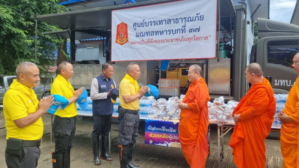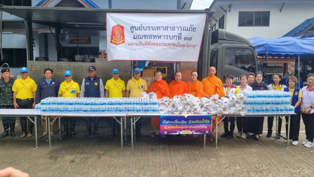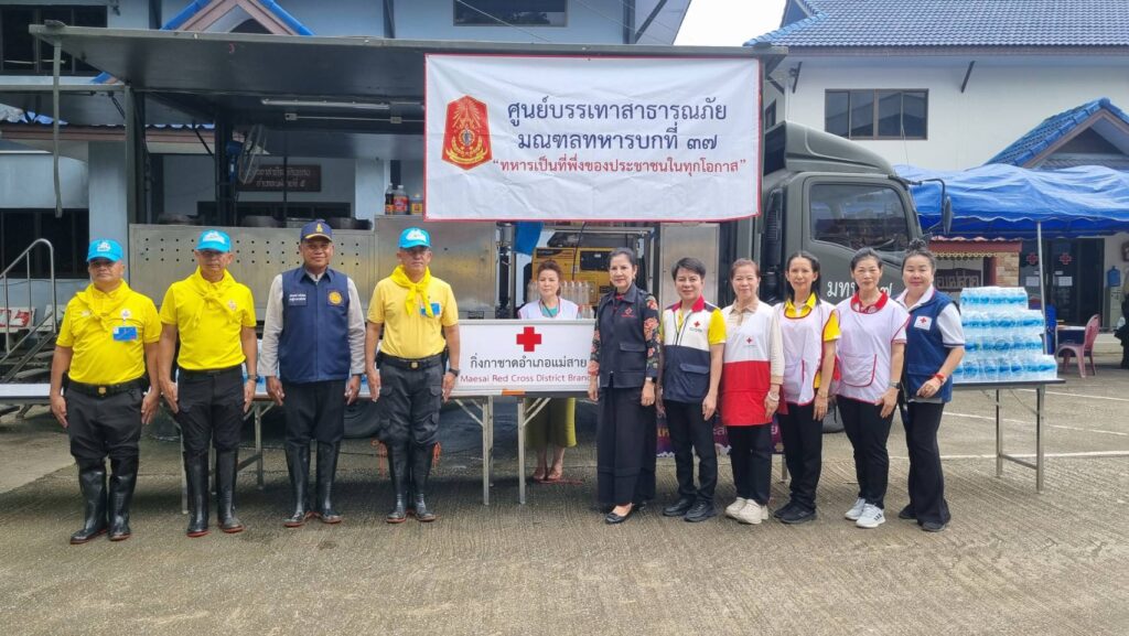 จากนั้น แม่ทัพภาคที่ 3 ในฐานะ ผู้อำนวยการศูนย์อำนวยการจิตอาสาพระราชทานภาค 3 และผู้อำนวยการศูนย์อำนวยการจิตอาสาพระราชทานมณฑลทหารบกที่ 37 เยี่ยมให้กำลังใจพบปะกำลังพลจิตอาสาภัยพิบัติ ของศูนย์บรรเทาสาธารณภัยมณฑลทหารบกที่ 37 ที่ร่วมปฏิบัติภารกิจบรรเทาความเดือดร้อนด้านอุทกภัยน้ำท่วมฉับพลันจากแม่น้ำสายล้นตลิ่ง ทำให้หลายชุมชนในพื้นที่อำเภอแม่สาย จังหวัดเชียงราย ได้รับผลกระทบเป็นวงกว้าง