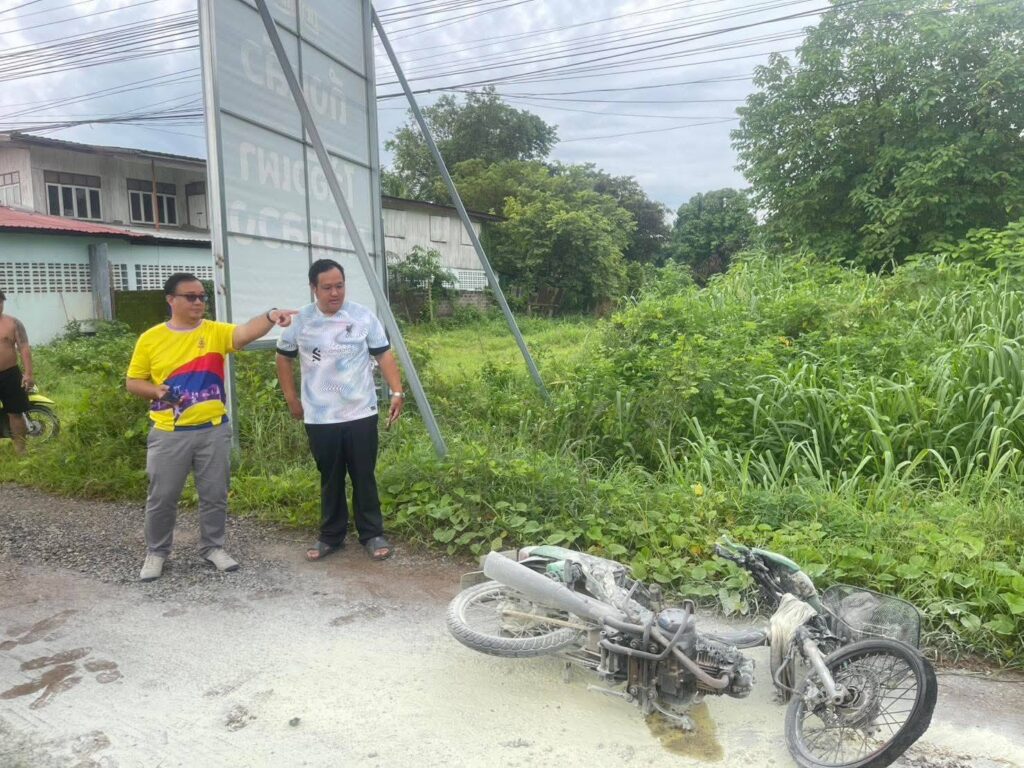 ที่เกิดเหตุพบรถจักรยานยนต์ ทะเบียน ษษข 696 กทม นอนตะแคง ไฟกำลังลุกท่วมรถ โดยมีชาวบ้านช่วยกันดับวุ่น ขณะเดียวกันมีพนักงานร้านไส้อัวเผาเตาหลวงอยู่ใกล้ที่เกิดเหตุ ได้นำถังเคมีดับเพลิงจากทางร้านมาช่วยดับ ในที่สุดเปลวไฟที่กำลังลุกท่วมรถก็ค่อยๆหมดฤทธิ์