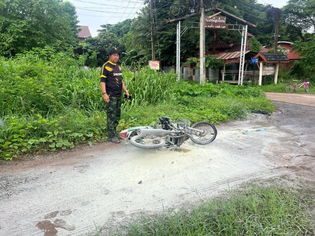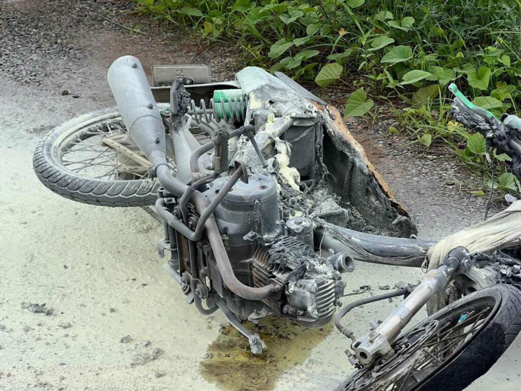 ส.ท.ปิ่น กล่าวว่า รับทราบจากเจ้าของรถบอกว่า ได้ขับรถจักรยานยนต์มาจากฝั่งตรงข้าม ช่วงที่ขับรถก็ได้ปกติดี พอข้ามถนนมาแล้ว ได้กลิ่นเหม็นไหม้ จึงก้มดูใต้ท้องรถบริเวณเครื่องเห็นไฟกำลังลุกไหม้ จึงทำการขอความช่วยเหลือจากบ้านรอบข้างช่วยกันดับไฟ ส่วนสาเหตุยังไม่ทราบว่าไฟไหม้ได้อย่างไร ทางเจ้าของรถจะการเก็บรักษาไว้ ไม่มีคู่กรณีหรือทรัพย์สินอื่นเสียหายแต่อย่างใด