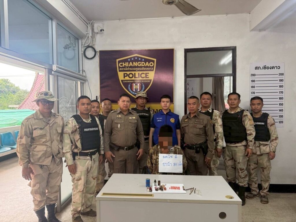 วันที่ 30 กรกฎาคม 2568 ตั้งแต่เวลา 07:30 น. นายกฤตพล รชตเมธานนท์ นายอำเภอเชียงดาว/ผอ.ศป.ปส.อ.เชียงดาว มอบหมายให้ นายพัฒนา ก๋ามะโน ปลัดอำเภอฝ่ายความมั่นคง นำสมาชิก อส.อ.เชียงดาว ที่ 6 ร่วมกับ นายขวัญชัย คันทวัง ผู้ใหญ่บ้านหมู่ที่ 8 บ้านแม่อ้อใน ตำบลแม่นะ สภ.เชียงดาว และ ฉก.ไชยานุภาพ ลงตรวจสอบพื้นที่เนื่องจากได้รับแจ้งจากพลเมืองผู้หวังดี ว่ามีการจำหน่ายยาเสพติด บริเวณห้างไร่ไม่มีหมายเลข ทิศตะวันออกของบ้านแม่อ้อใน ม.8 ต.แม่นะ อ.เชียงดาว จ.เชียงใหม่