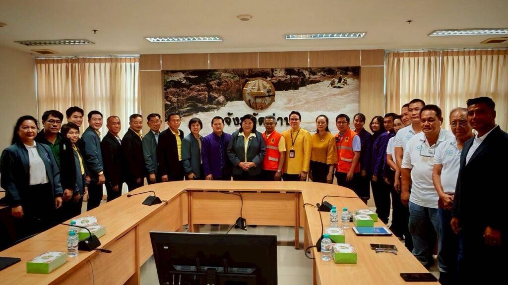 วันที่ 30 กรกฎาคม 2568 เวลา ที่ ศาลากลางจังหวัดน่านผู้ช่วยศาสตราจารย์ ดร.วิโรจน์ มงคลเทพ ผู้อำนวยการสำนักงานบริหารมหาวิทยาลัยเทคโนโลยีราขมงคลล้านนา น่าน นำคณะผู้บริหาร เข้ารับมอบนวัตกรรมช่วยบรรเทาและฟื้นฟูหน่วยงานและผู้ได้รับผลกระทบจากสถานการณ์น้ำท่วมในพื้นที่จังหวัดน่าน จาก ดร.วิภารัตน์ ดีอ่อง ผู้อำนวยการสำนักงานการวิจัยแห่งชาติ (วช.) พร้อมด้วยผู้ทรงคุณวุฒิ วช. และคณะนักวิจัย โดยมี นายบรรจง ขุนเพชร รองผู้ว่าราชการจังหวัดน่าน เป็นผู้แทนรับมอบในส่วนของจังหวัดน่านด้วย