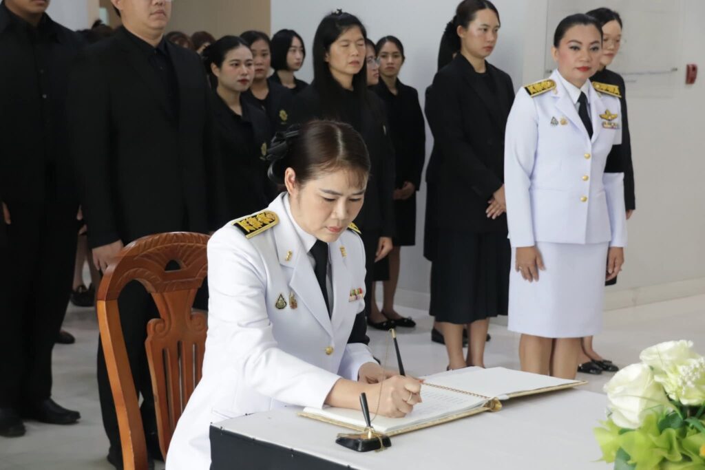 จากนั้นยืนสงบนิ่งเป็นเวลา 93 วินาที พร้อมถวายความเคารพ และลงนามถวายความอาลัย เพื่อแสดงถึงความจงรักภักดีและสำนึกในพระมหากรุณาธิคุณเป็นล้นพ้นอันหาที่สุดมิได้ ที่พระองค์ทรงปฏิบัติพระราชกรณียกิจนานัปการ เพื่อประโยชน์สุขของประชาชนชาวไทย ณ บริเวณโถงอาคารสำนักงาน ปปส.ภาค 5.