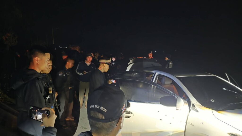 จนมาถึงบริเวณเส้นทางกลางทุ่งนา บ.สันโค้ง หมู่ 6 ต.มะลิกา อ.แม่อาย จ.เชียงใหม่ เจ้าหน้าที่ได้ส่งสัญญาณไฟแสดงตัว แต่รถคันดันกล่าวได้เร่งเครื่องชนรถ เจ้าหน้าที่แล้วได้ยิงปืนใส่เพื่อเปิดทางหลบหนี เจ้าหน้าที่จึงได้ยิงตอบโต้ จากนั้นทั้ง 2 คนร้ายได้วิ่งหนีลงทุ่งนาข้างทางบริเวณจุดเกิดเหตุ ตัวคนร้ายได้ยิงปินต่อสู้เป็นเวลา 2-3 นาที จนเสียงปืนสงบลง เจ้าหน้าที่ปลอดภัย
