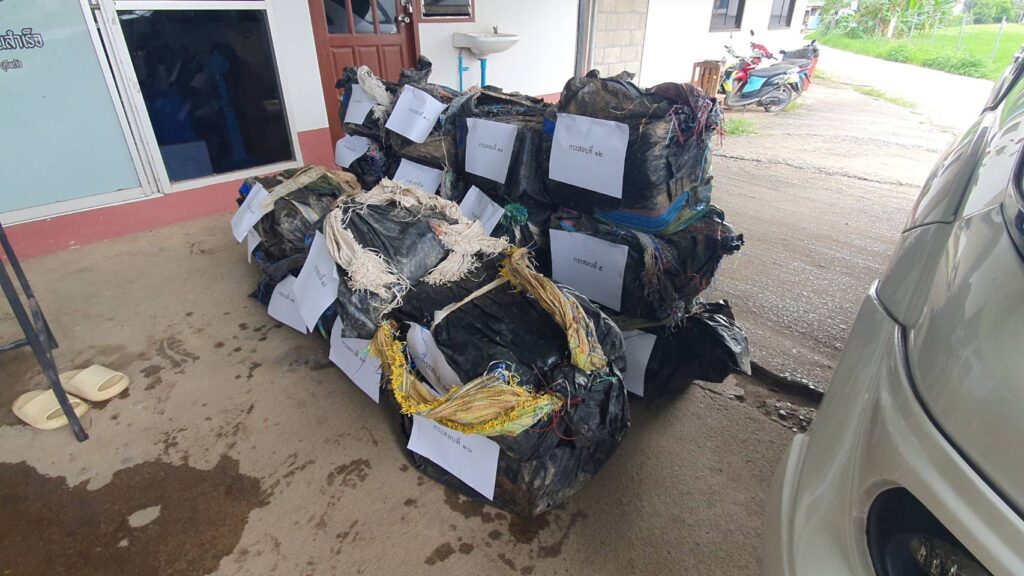 โดยยาบ้าที่พบภายในรถอยู่ในถุงขยะสีดำ ห่อกระสอบดัดแปลงสีรุ้ง เมื่อเปิดออกพบว่ามีสัญลักษณ์ โลโก้ รถยนต์ TOYOTA เมื่อแกะออกพบถุงพลาสติกสีฟ้าอยู่ภายใน และมียาบ้าบรรจุอยู่ภายใน ทางเจ้าหน้าที่จึงได้ทำการตรวจยึดไว้เป็นของกลางนำส่งพนักงานสอบสวนดำเนินคดีตามกฎหมายต่อไป