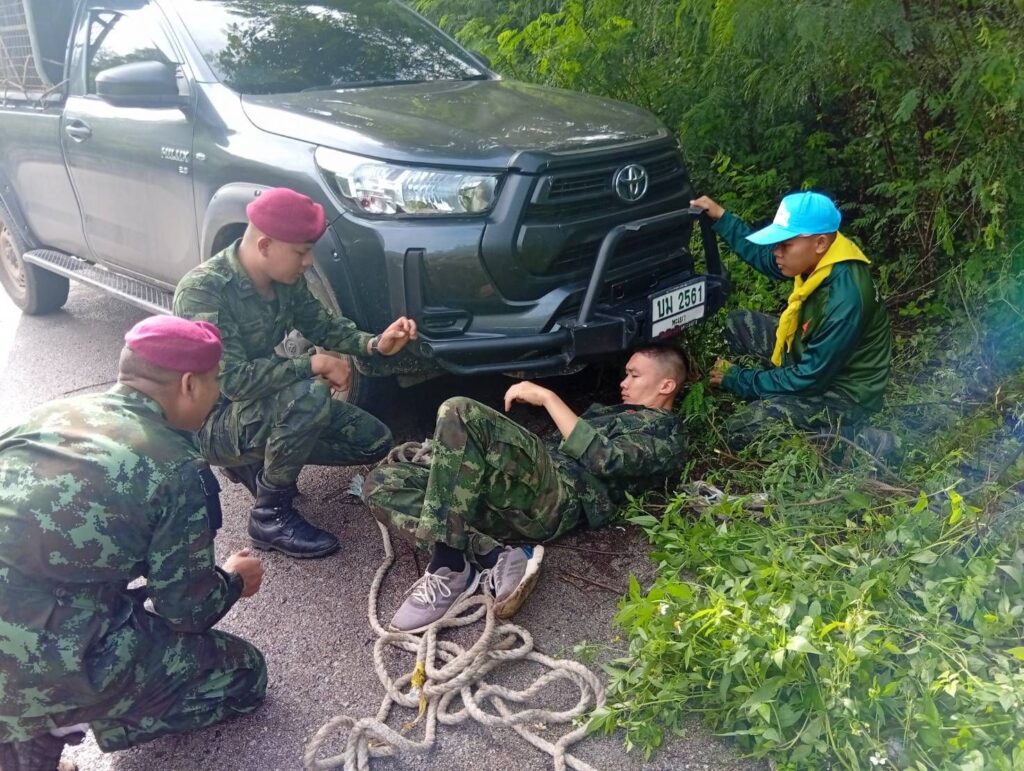 ลำปาง-ทหารกองร้อยฝึกรบพิเศษที่ 3 ประตูผา ช่วยเหลือประชาชน รถเกิดอุบัติเหตุ ตกข้างทาง นำส่งถึงบ้านอย่างปลอดภัย