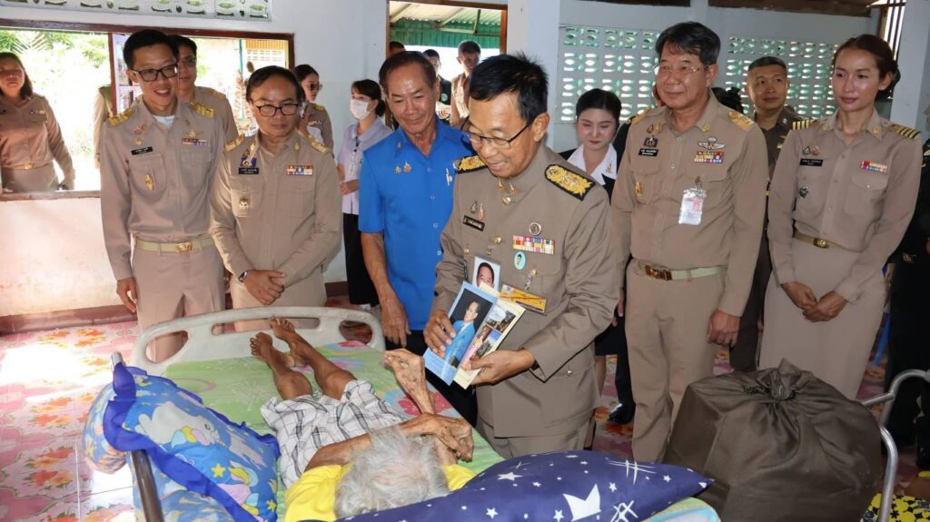 จากนั้น องคมนตรีและคณะลงพื้นที่มอบสิ่งของพระราชทานแก่ นายสุมนต์ ศรีโพธิ์อายุ 64 ปี บ้านเลขที่ 110 หมู่ 5 ตำบลป้าแมต อำเภอเมืองแพร่ เป็นผู้ป่วยติดเตียง เนื่องจากเส้นเลือดในสมองแตก เมื่อ 10 ปีที่แล้ว อาศัยอยู่กับครอบครัว จำนวน 3 คน คือพี่สาวคนโต อายุ 75 ปี มีโรคประจำตัว ความดันโลหิตและไขมันสูงและเบาหวาน และพี่ชายคนกลาง อายุ 71 ปี มีโรคประจำตัว ความดันโลหิตและไขมันสูง และเยี่ยมบ้านนางบุญสืบ ศรีโพธิ์ อายุ 87 ปี บ้านเลขที่ 110/1 หมู่ 5 ตำบลป่าแมต เป็นผู้ป่วยติดเตียงมีโรคประจำตัว ความดันโลหิตและไขมันสูงอาศัยอยู่กับบุตรสาว และบุตรชาย มีโรคประจำตัวโลหิตและไขมันสูง