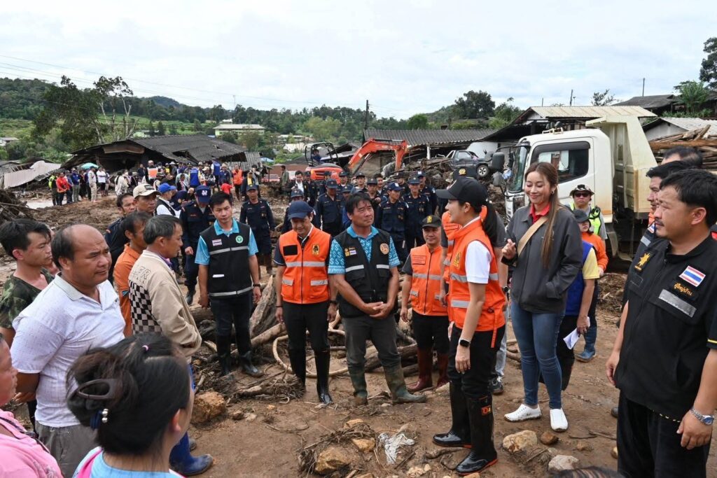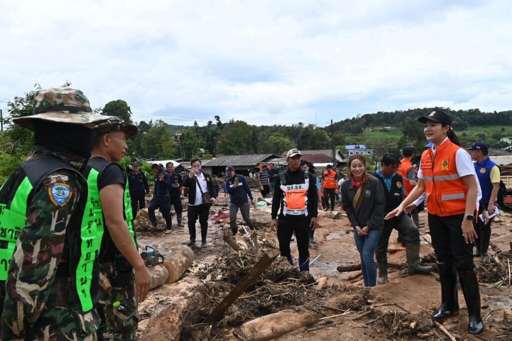 น.ส.ธีรรัตน์ กล่าวเพิ่มเติมว่า การลงพื้นที่วันนี้ได้พบว่ามีหลายหน่วยงานที่ได้เข้ามาช่วยเหลือร่วมทำงานแบบบูรณาการทั้งในส่วนของกระทรวงมหาดไทย พม. ที่ได้พูดคุยกับพี่น้องประชาชน สาธารณสุขในการช่วยเหลือผู้ที่ได้รับบาดเจ็บ อีกทั้งในส่วนของกระทรวงทรัพยากรธรรมชาติและสิ่งแวดล้อม นำ จนท.ลงมาช่วยเหลือด้วย เพราะตรงนี้เป็นพื้นที่ของกรมอุทยานฯ ซึ่งจะได้หาที่พักที่ปลอดภัยให้กับผู้ที่ได้รับผลกระทบต่อไปโดยจะดำเนินการให้รวดเร็วที่สุด เพื่อที่จะให้พี่น้องประชาชนเกิดความอุ่นใจว่ามีเจ้าหน้าที่เข้ามาช่วยเหลือเต็มกำลัง ซึ่งเมื่อวานนี้กรมชลประทานได้เข้ามาดูในเรื่องของการปรับพื้นที่ให้มีความมั่นคงแข็งแรงก่อนในจุดที่เป็นแนวรับน้ำหรือพื้นที่ที่มีความเสี่ยงว่าอาจจะเกิดดินโคลนถล่มและการสไลด์ของดินอีก โดยจะทำให้มีความแข็งแรงขึ้น หลังจากนั้นจะได้ดูว่าพื้นที่ไหนที่จะสามารถตั้งที่อยู่อาศัยให้ผู้ที่บ้านได้รับความเสียหาย ซึ่งอาจจะไม่ใช่ที่บริเวณนี้ เพราะว่าหลาย ๆ ครอบครัวได้แจ้งว่ายินดีที่จะย้ายออกจากบริเวณพื้นที่เดิม โดยที่ไม่อยากให้ห่างไกลจากญาติพี่น้องของเขาหรือที่ที่จะต้องทำนา ทำสวน ทำไร่ แต่ก็ต้องเป็นพื้นที่ที่ปลอดภัยไม่เกิดเหตุการณ์ซ้ำแบบนี้อีก