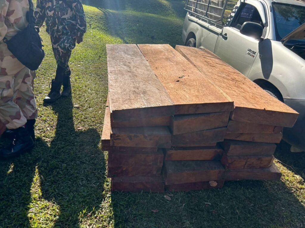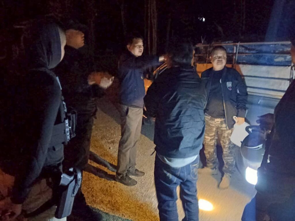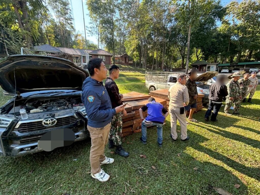 เจ้าหน้าที่จึงบูรณาเข้าจับกุมสกัดจับรถทั้ง 3 คัน ซึ่งสามารถจับกุมผู้ต้องหาได้จำนวน 2 ราย โดยอีก 1 ราย วิ่งหลบหนีไปได้ ตรวจยึดรถทั้ง 3 คันพร้อมของกลางไม้ประดู่แปรรูปจำนวน 45 แผ่น/เหลี่ยม ปริมาตร 3.9643 ลูกบาศก์ คิดเป็นมูลค่าความเสียหายของกรมอุทยานฯ เป็นเงิน 277,501 บาท ผู้ต้องหาทั้ง 2 ราย เป็นชาย สัญชาติไทย โดยให้การรับสารภาพว่า พวกตนทั้ง 3 คน ได้รับการว่าจ้างจาก นายนะ (ไม่ทราบชื่อและนามสกุลจริง) ว่าจ้างให้ตนขับรถนำทางและบรรทุกลำเลียงไม้ โดยได้รับค่าจ้างคนละ 1,500 บาท (สถานที่ส่งมอบของยังรอการสอบสวนเพิ่มเติม)